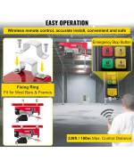 Kabellose Fernsteuerung: Mit dieser kabellosen Fernbedienung können Sie den elektrischen Hebezug zum Heben, Platzieren und Absenken der Ausrüstung ohne die Hilfe einer anderen Person bedienen, wodurch Sie nicht mehr an den Hebezug gebunden sind.