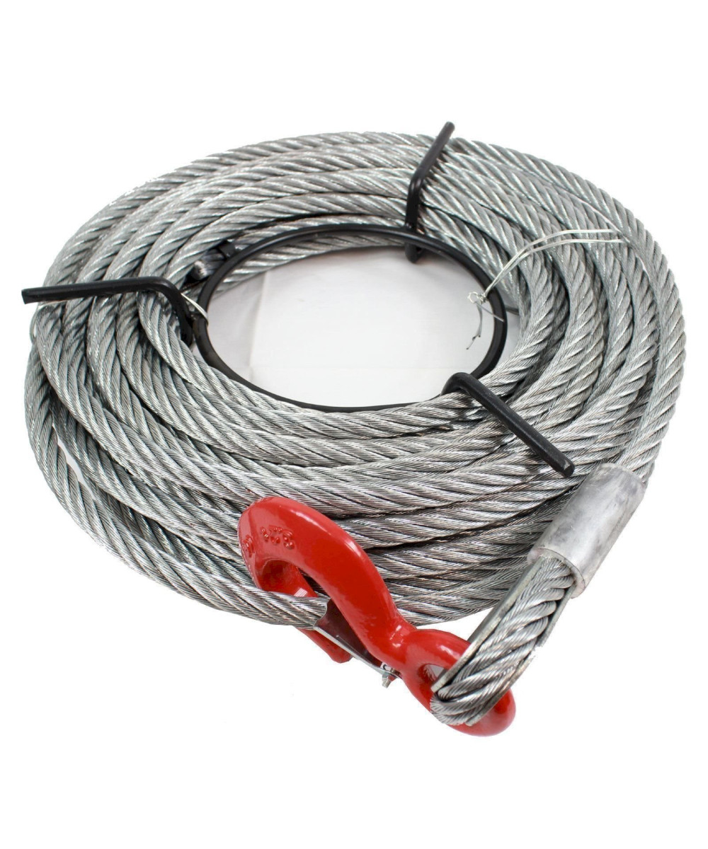 Am Ende des Seiles befindet sich ein Lasthaken mit Sicherung.