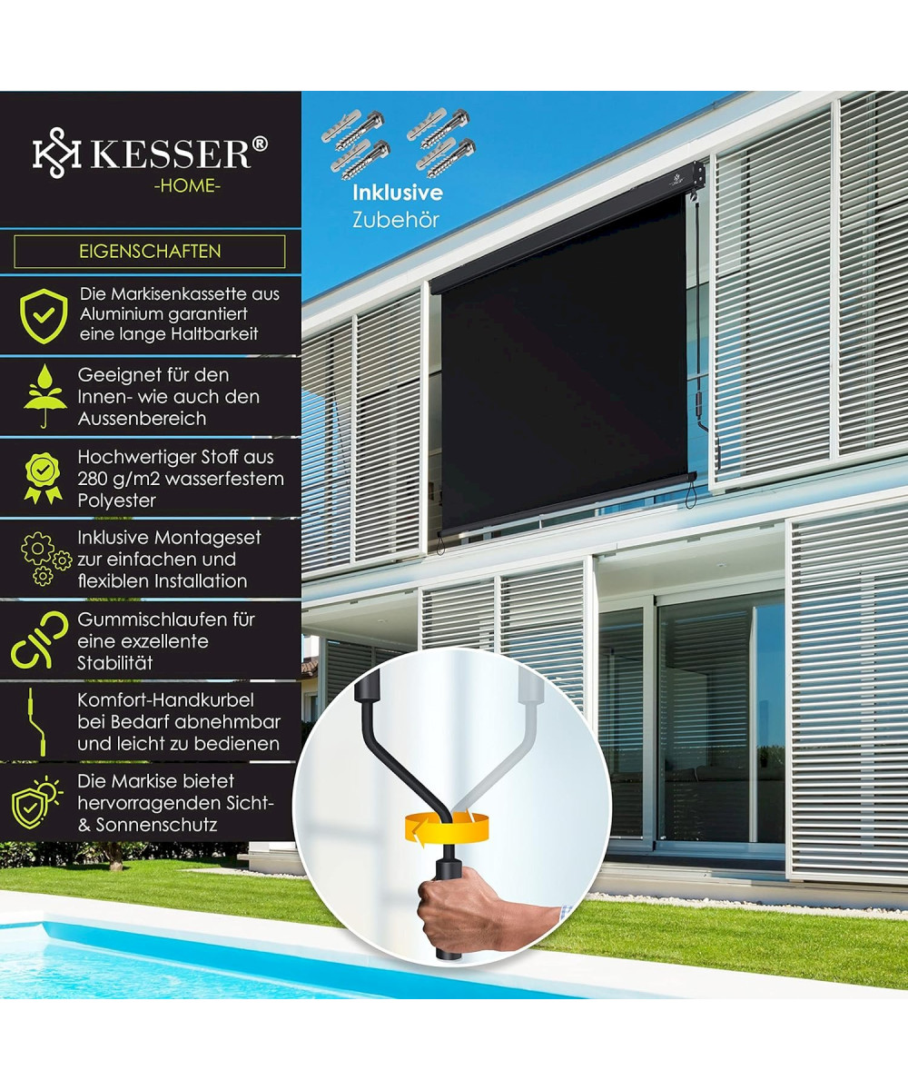 - Als Sonnenschutz, Sichtschutz, Blendschutz und Wetterschutz einsetzbar