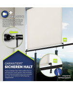 Die Balkonmarkise kommt inklusive Befestigungsmaterial und Anleitung für eine unkomplizierte Montage an der Wand oder Decke. Dank des Montagesets gestaltet sich der Aufbau problemlos und anpassungsfähig, sodass Sie schnellstmöglich von Ihrem neuen Sichtschutz profitieren können. Das Sonnendach lässt sich zusätzlich mit zwei Gummischlaufen befestigen, sodass eine enorme Stabilität gewährleistet wird.