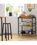 VASAGLE Küchenwagen Servierwagen Küchenwagen mit Tablett Vintagebraun