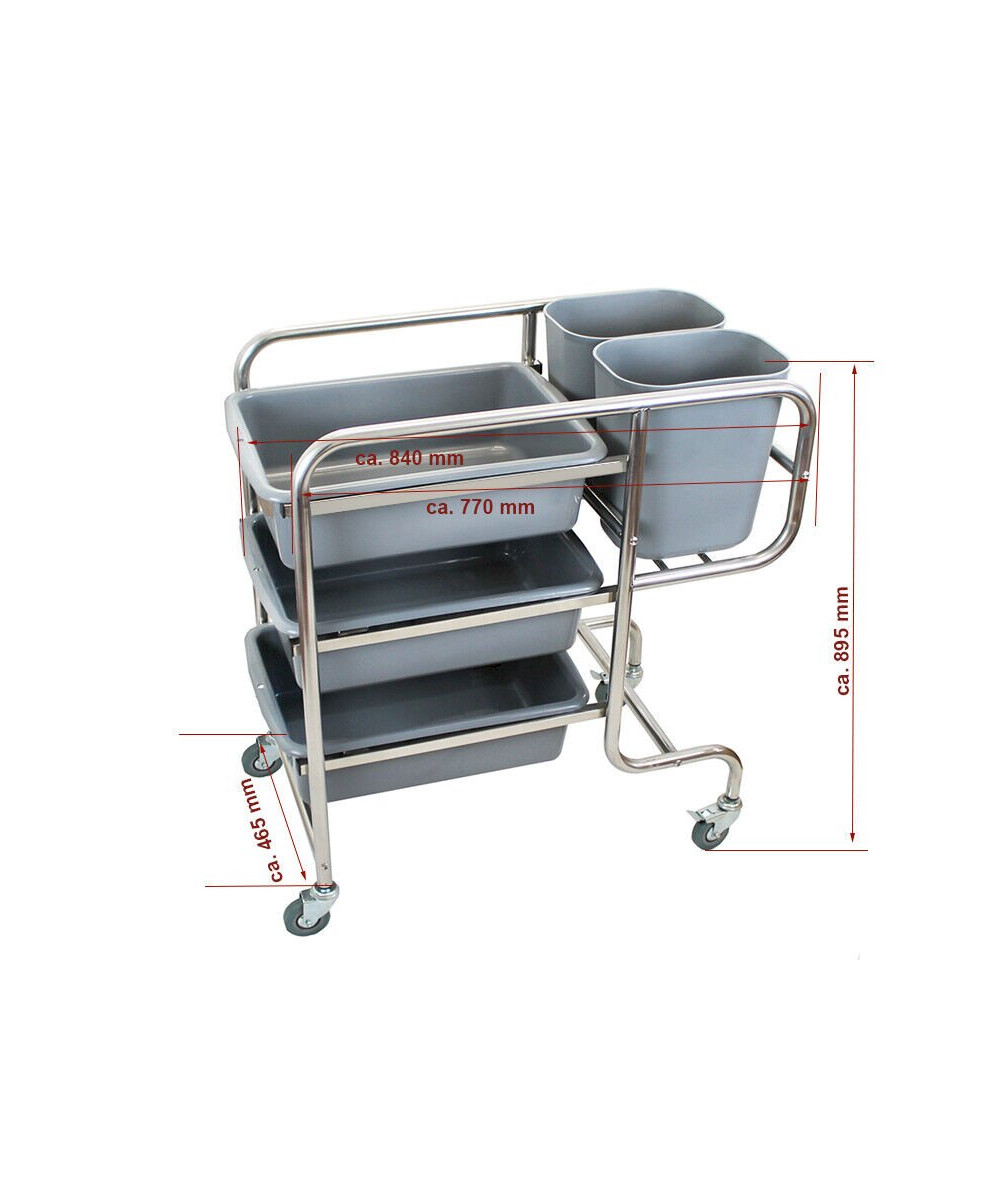 - Ausstattung: 5 Behälter aus Kunststoff, 4 Rollen (2 Rollen Feststellbar)