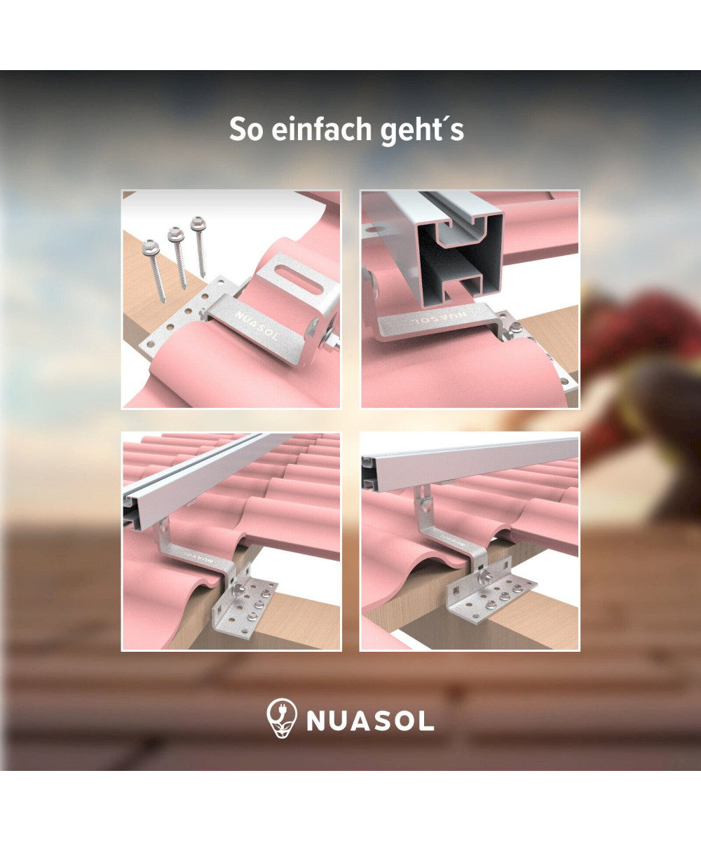NuaSol Photovoltaik Solarpanel Halterung 2er Montage Set Ziegeldach Befestigung