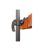 Mit Hilfe des Griffteils mit integrierter Kurbel lässt sich der Schirm leicht Öffnen und Schließen, sowie die Dachneigung entlang des Mastes individuell einstellen. - Drehgelenk