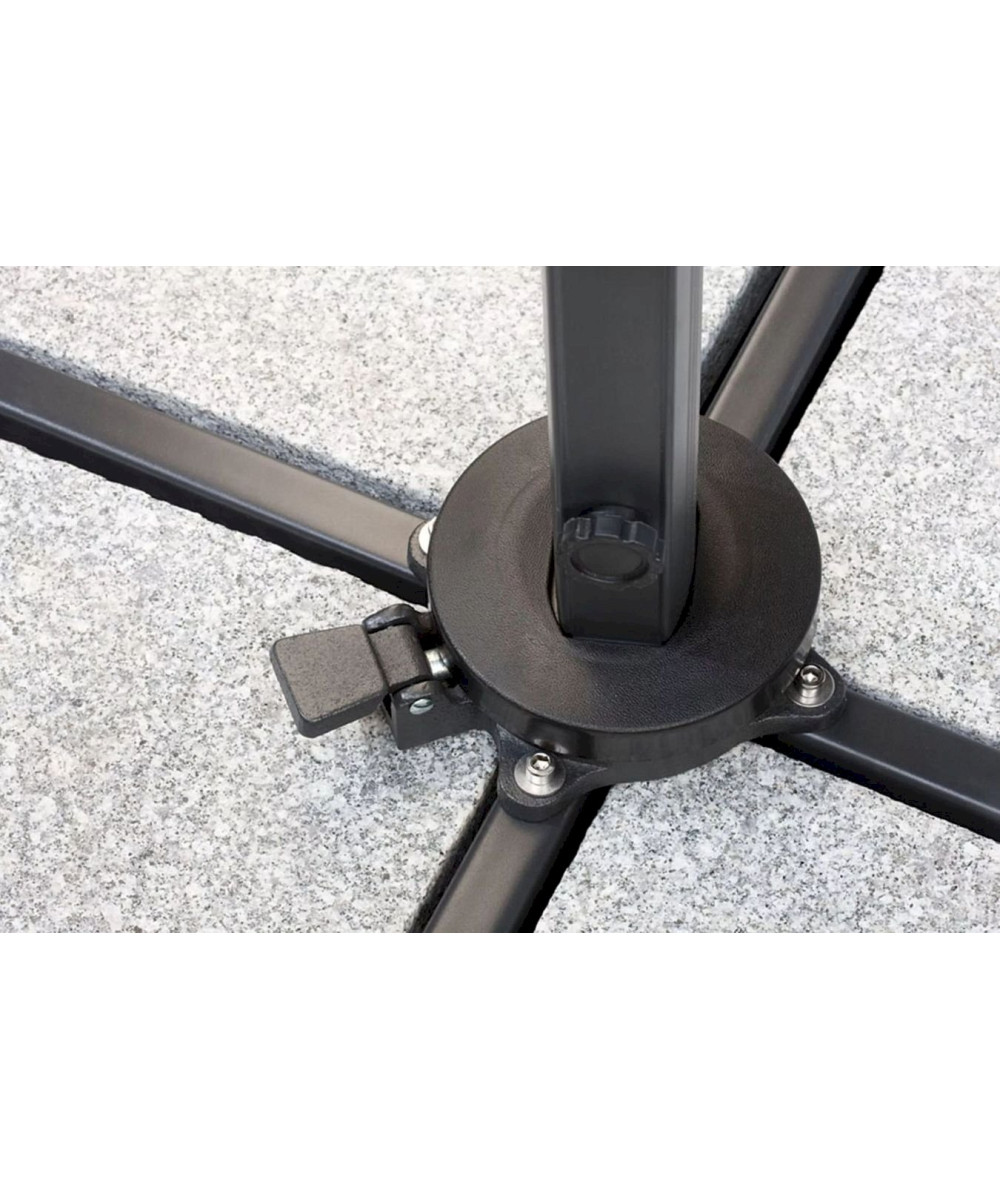 Durch betätigen des Fußpedals am Drehgelenk lässt sich der Schirm um 360° drehen, wodurch es Ihnen möglich ist, den Sonnenschutz ohne viel Aufwand entsprechend der Sonneneinstrahlung auszurichten.