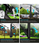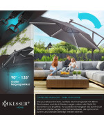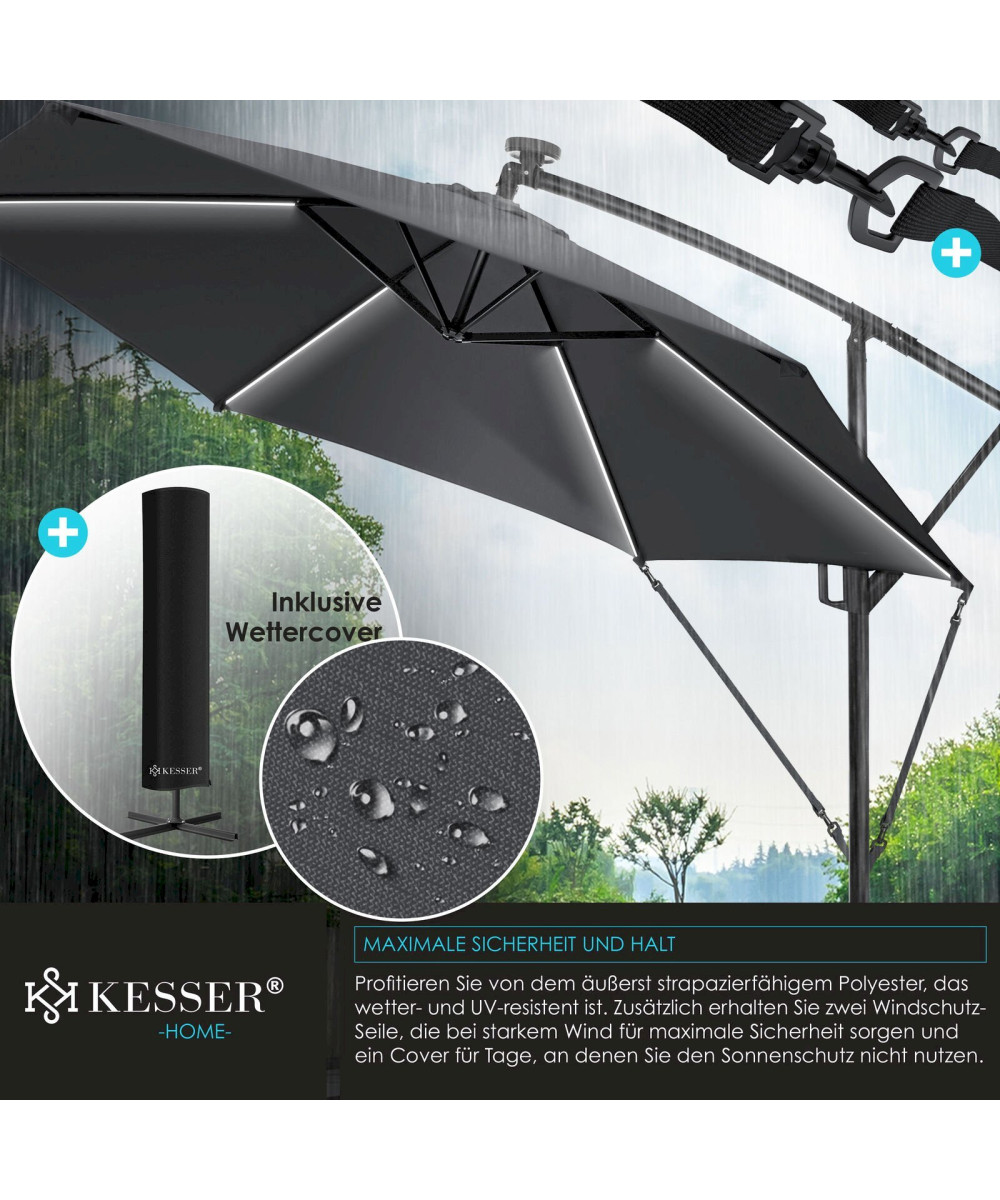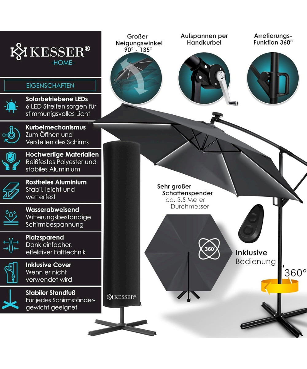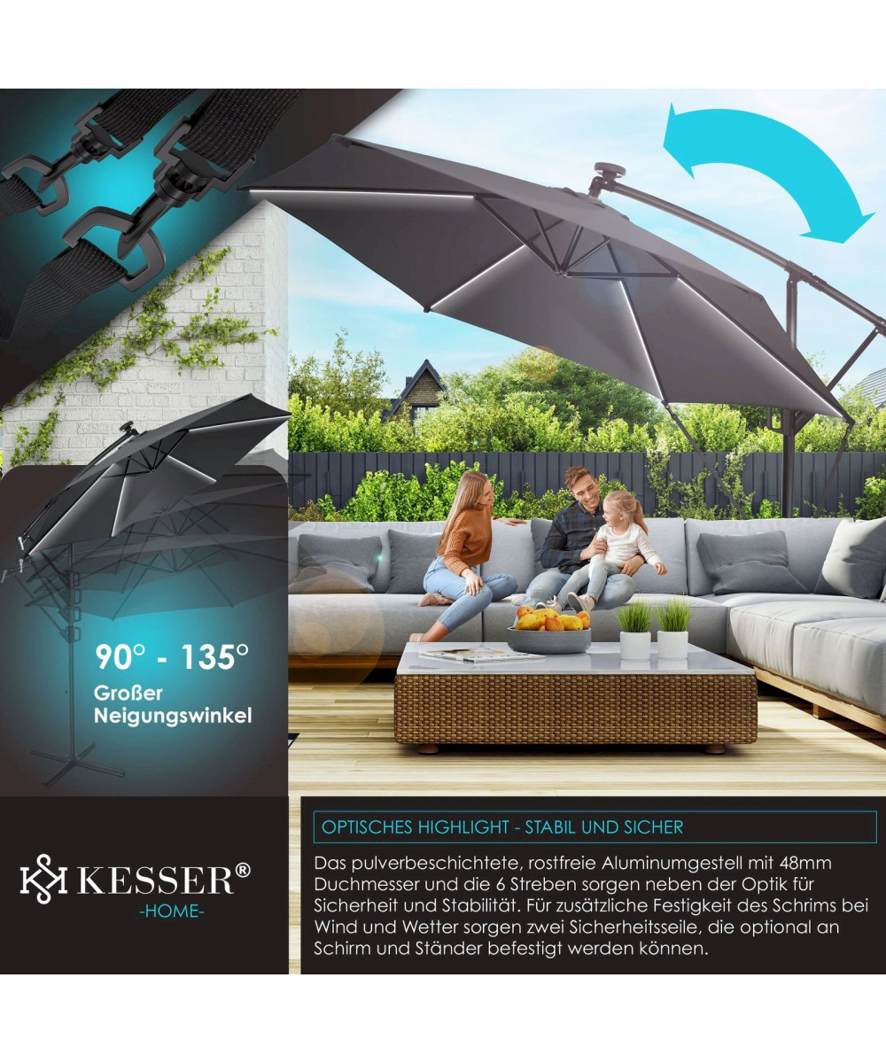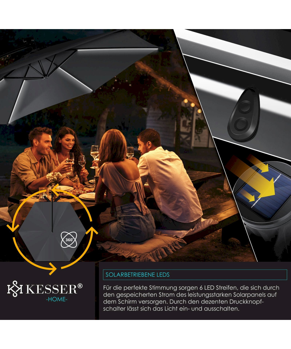 KESSER Sonnenschirm LED ∅350cm Alu Ampelschirm LED Solar anthrazit