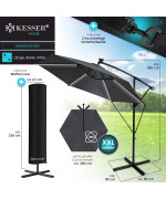 Das mitgelieferte Cover für Schutz gegen Regen und UV-Strahlung sorgt dafür, dass Ihr Sonnenschirm optimal geschützt ist. Insbesondere wenn Sie Ihren Schirm längere Zeit nicht nutzen, empfiehlt sich die Schirm Abdeckung überzuziehen, um ein Ausbleichen zu verhindern.