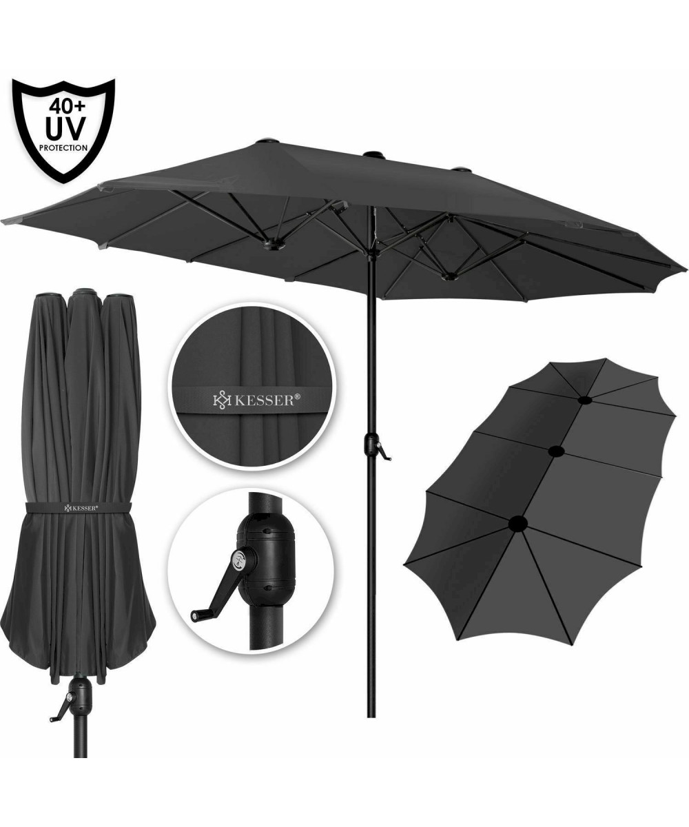 KESSER Alu Sonnenschirm Anthrazit Doppel Oval Marktschirm Handurbel Gartenschirm UV40+