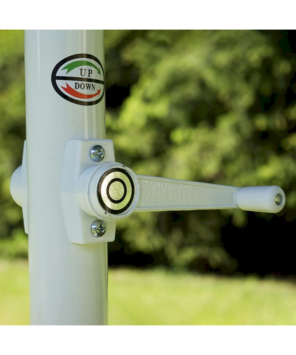 Der Schirm hat folgende Maße: Höhe: ca. 240 cm, Kurbelhöhe: ca. in 85 cm, ein 2 teiliges Rohr mit einem Rohrdurchmesser von 48mm.