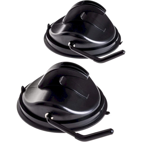Robuste Kunststoff-Saugnäpfe mit Klapphebel. Der Klapphebel erzeugt ein Vakuum, damit die Saugnäpfe sicher auf einer glatten, staubfreien und trockenen Oberfläche halten.