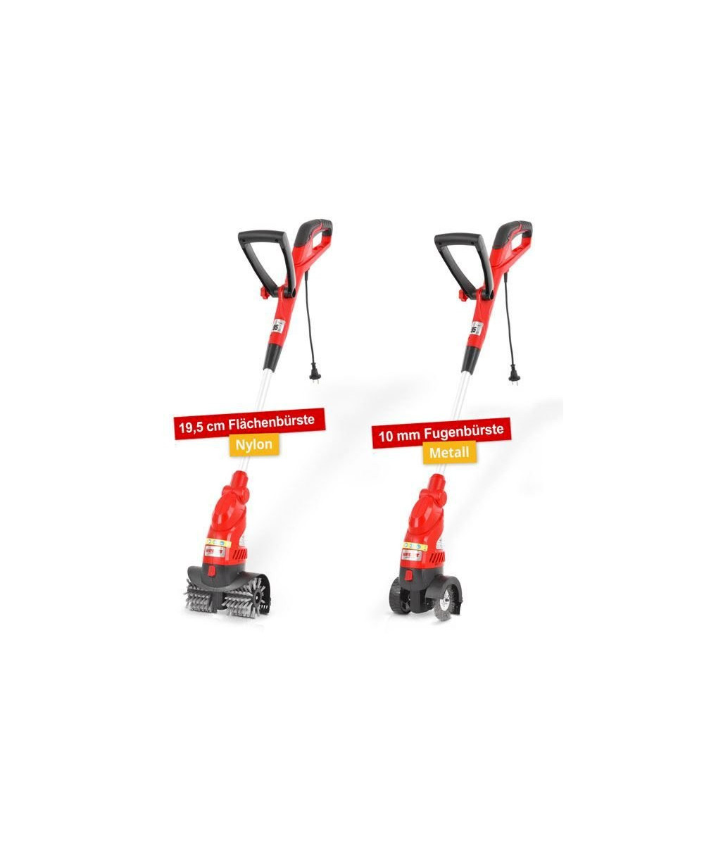 Desweitern gehörst die 10 mm breite Metall Fugenbürste zum Lieferumfang , diese reiniget Fugen auf unempfindlichen Untergründen, wie z.B. Pflaster- und Betonsteine zuverlässig von Moos und Unkraut. Für exaktes und sicheres Arbeiten sorgt das stabile Führungsrad. Die Metallbürste hat einen hohen Wirkungsgrad und ist besonders langlebig.