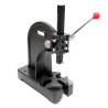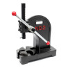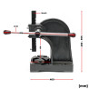 Mit einer Presskraft von 2 Tonnen und einer vierfach verstellbaren Grundplatte mit einem Durchmesser von 17 cm ist diese handbetriebene Presse flexibel einsetzbar und eignet sich nicht nur für Pressarbeiten, wie zum Beispiel dem Ein- und Auspressen von Lagern, Buchsen und Wellen, sondern kann beispielsweise auch zum Biegen von Werkstücken verwendet werden. Zur Erhöhung der Stabilität kann die mit den meisten Werkbänken kompatible Drehdornpresse zusätzlich durch Verschrauben befestigt werden.
