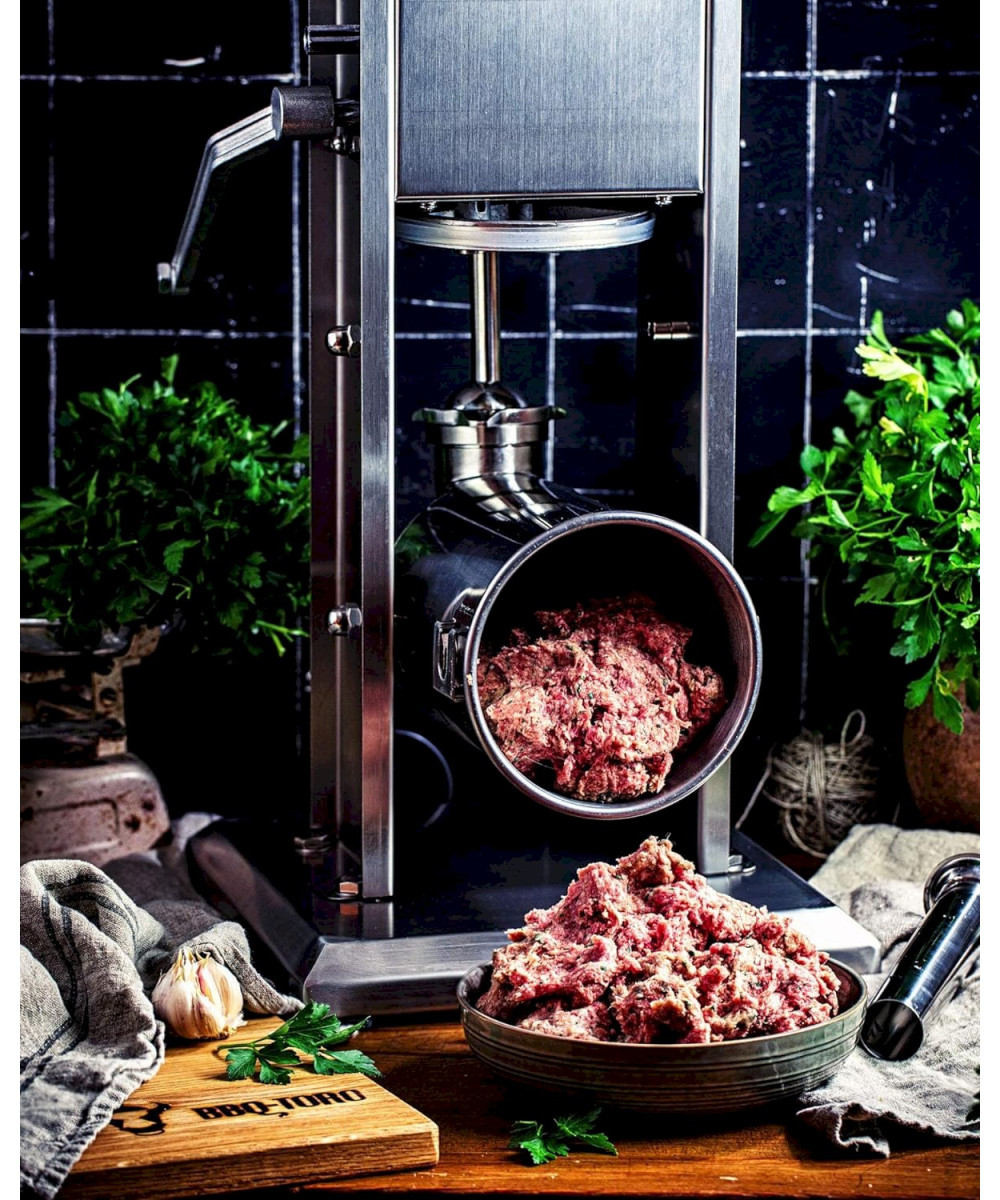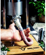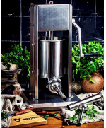 Die, aus hochwertigem Edelstahl gefertigte, Wurstfüllmaschine hat einen ca. 5 Liter Volumen großen Zylinder, welchen Sie mit der Wurstmasse befüllen können.