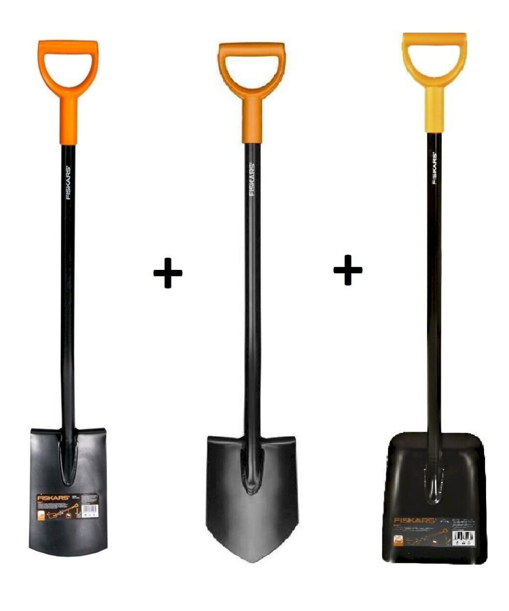 Fiskars Gartenspaten Spits + Gartenspaten Rund + Schaufel