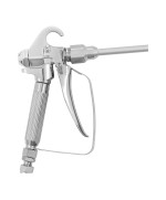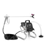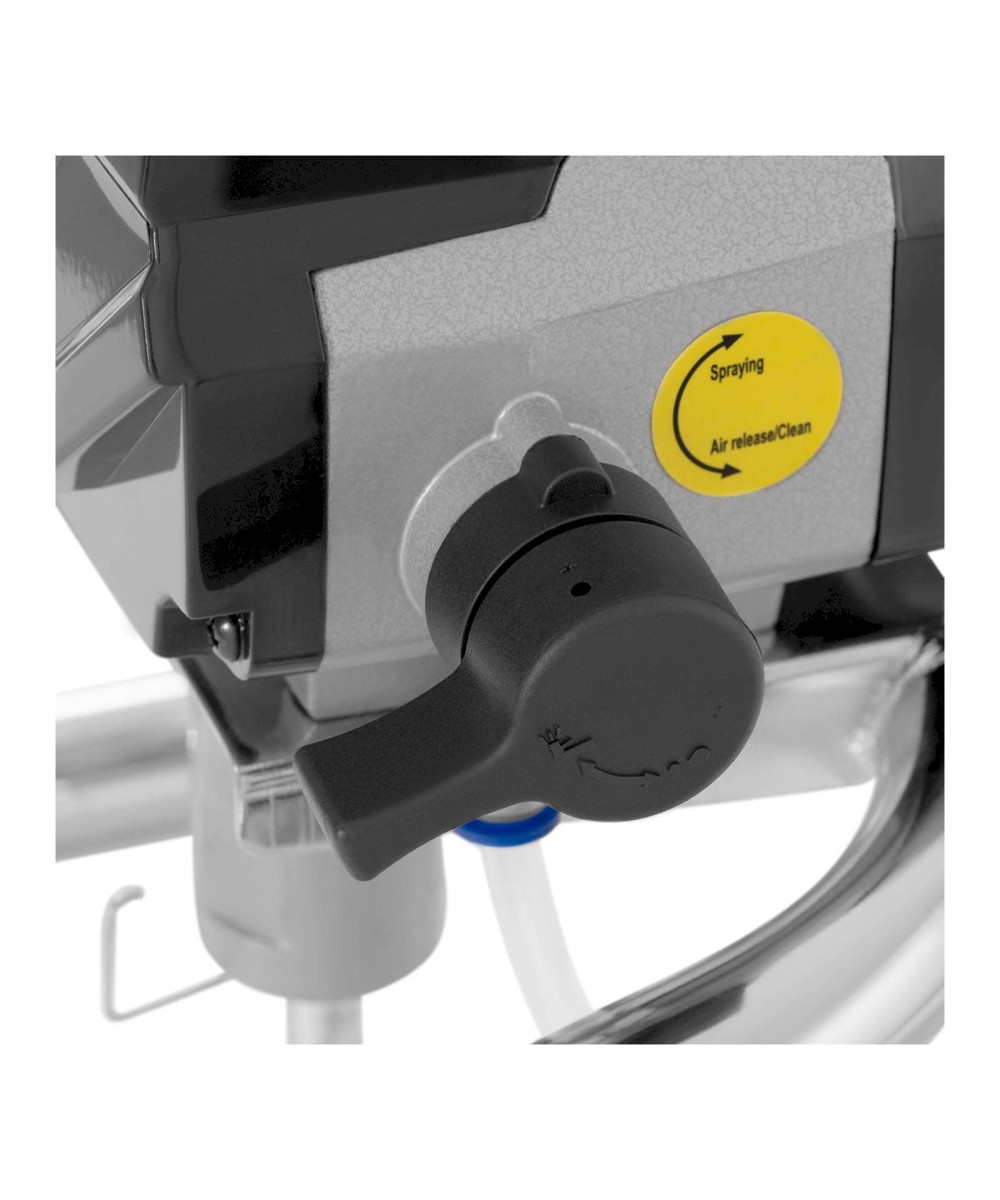 Das langlebige Gerät hat einen stabilen Rahmen, auf dem es sicher steht. Mit einem Griff setzen Sie das Farbsprühsystem Wandfarbe einfach bei Bedarf um. Per Knopfdruck sorgen Sie für eine sichere Druckentlastung. Zusätzlich Sicherheit gewähren eine Abzugssperre der Spritzpistole sowie der eingebaute Düsenschutz.