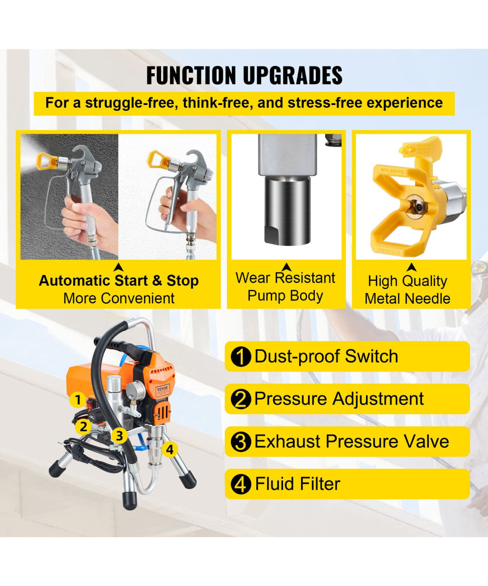 VEVOR Hochdruck Farbspritzgerät 2200W 2L/min Spritzpistole Sprayer Maschine