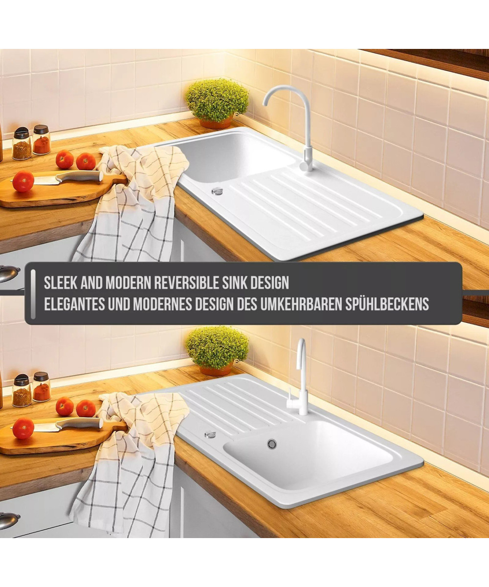 Machen Sie Ihr Geschirrspülerlebnis erträglicher mit unserem Geschirrspülbecken mit Abtropffläche. Das praktische Design und die verführerische Ästhetik gehen Hand in Hand mit den heutigen Einrichtungstendenzen und dem hektischen Lebensstil. Diese Spüle besteht aus 80 % natürlichem Quarzstein, ist extrem langlebig und pflegeleicht und gewährleistet so eine langjährige, angenehme Nutzung.