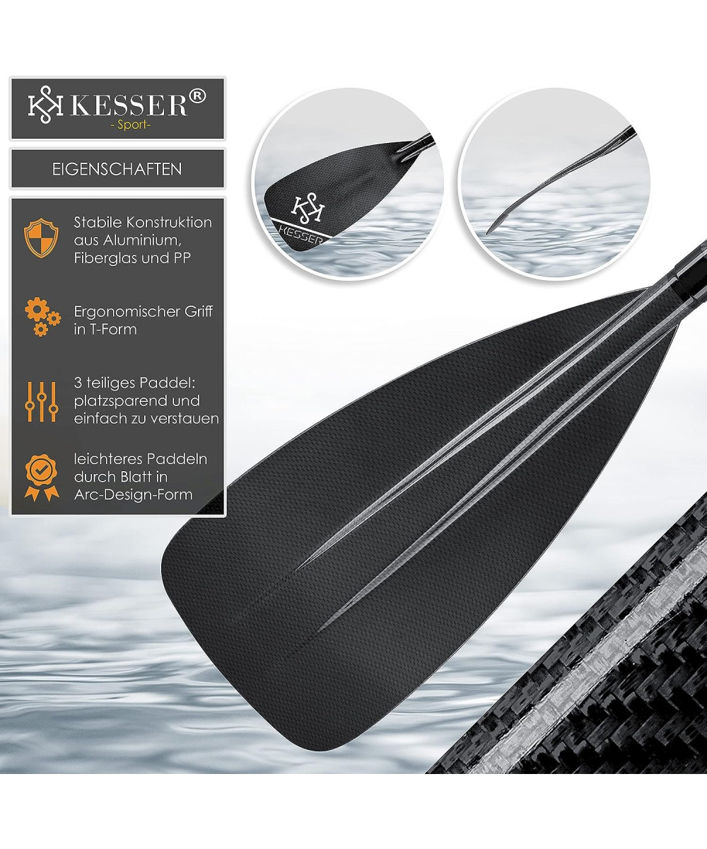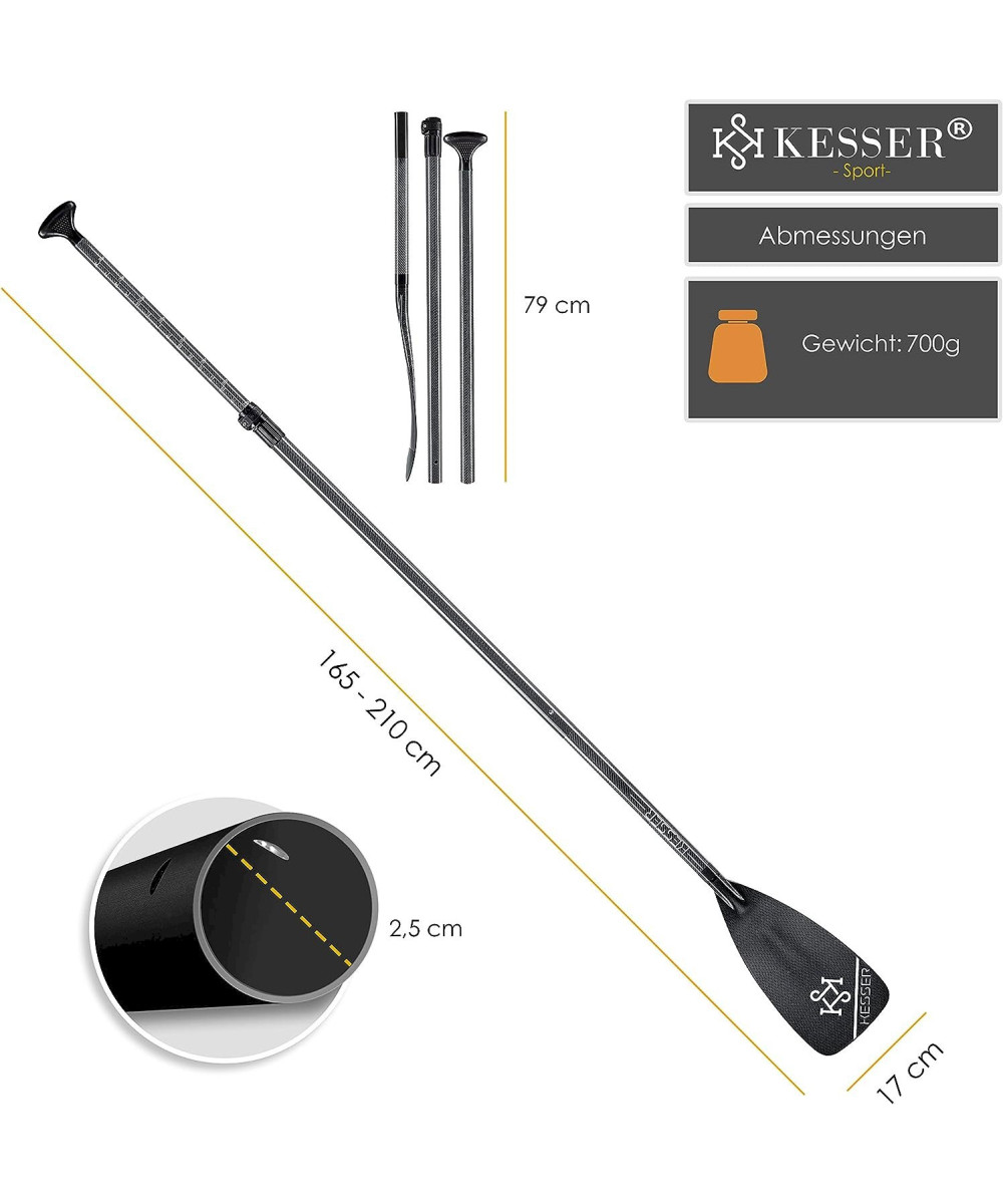 KESSER Paddel Carbon Professional Speed - 3-teilig für SUP Kayak Stand-Up Paddling Board Schwarz