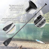 Ein großer Vorteil des 3-teiligen Paddelsets ist das klemmbare Stecksystem. Durch die angegebene Größenskala von 165 - 210 cm auf dem Paddelschaft, wird Ihnen ein einfaches und schnelles Verstellen auf Ihre perfekte Wunschlänge ermöglicht, sodass Bewegungen flüssig und routiniert ausgeführt werden können. Das hochwertige Material aus Aluminium sorgt für ein leichtes Gewicht und rundet somit ein perfektes Stehpaddel ab.