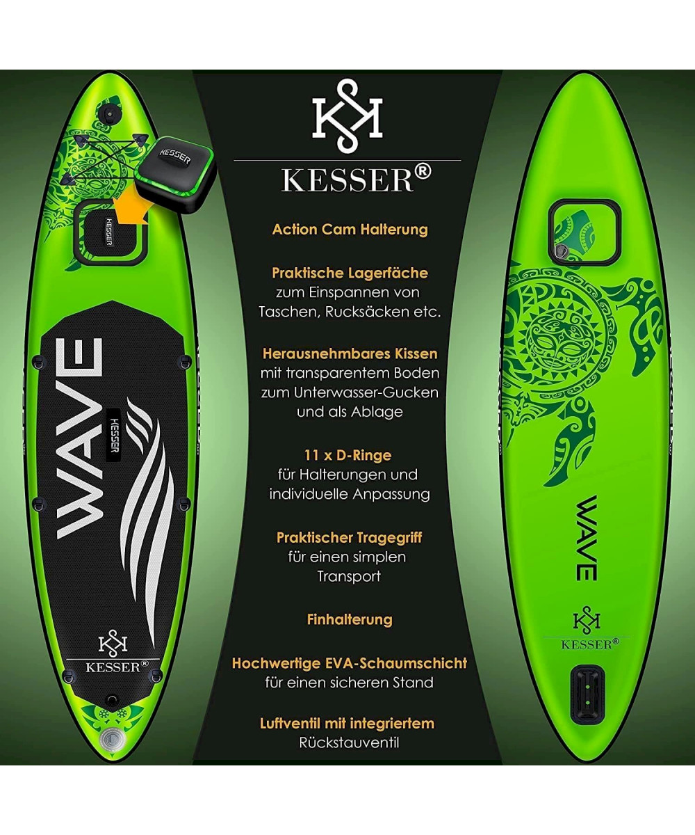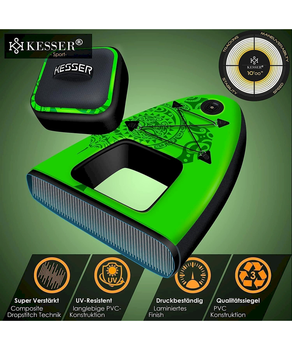 - MITGELIEFERTE RUCKSACKTASCHE: Das aufblasbare KESSER Surfboard ist als Paddelboard oder Kajak verwendbar von Anfänger bis fortgeschrittenem Stand Up Paddling-Fahrer. Es lässt sich mühelos auf Reisen in der mitgelieferten Rucksacktasche transportieren, die Tasche ist zudem gut gepolstert und hat einen extrem großen Stauraum, so haben Sie das SUP-Board immer dabei und darüber hinaus noch Platz für weitere Dinge.