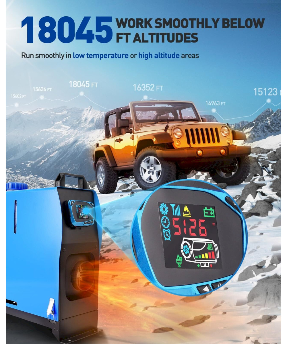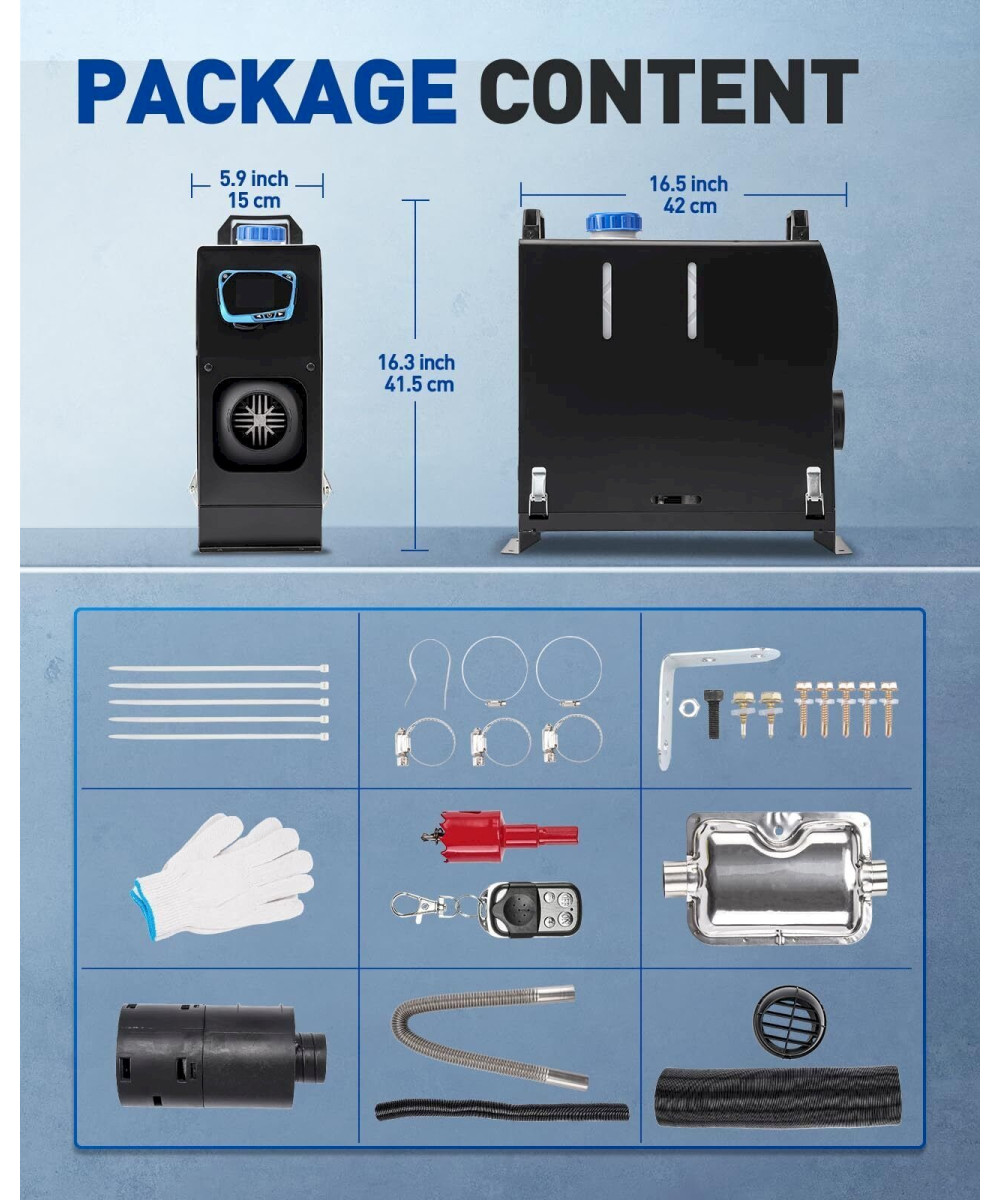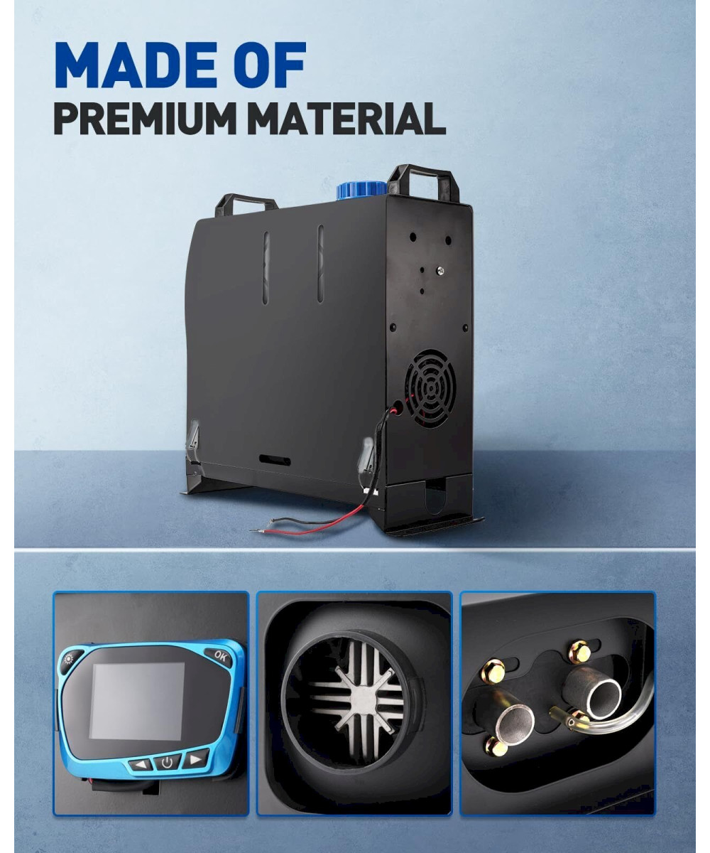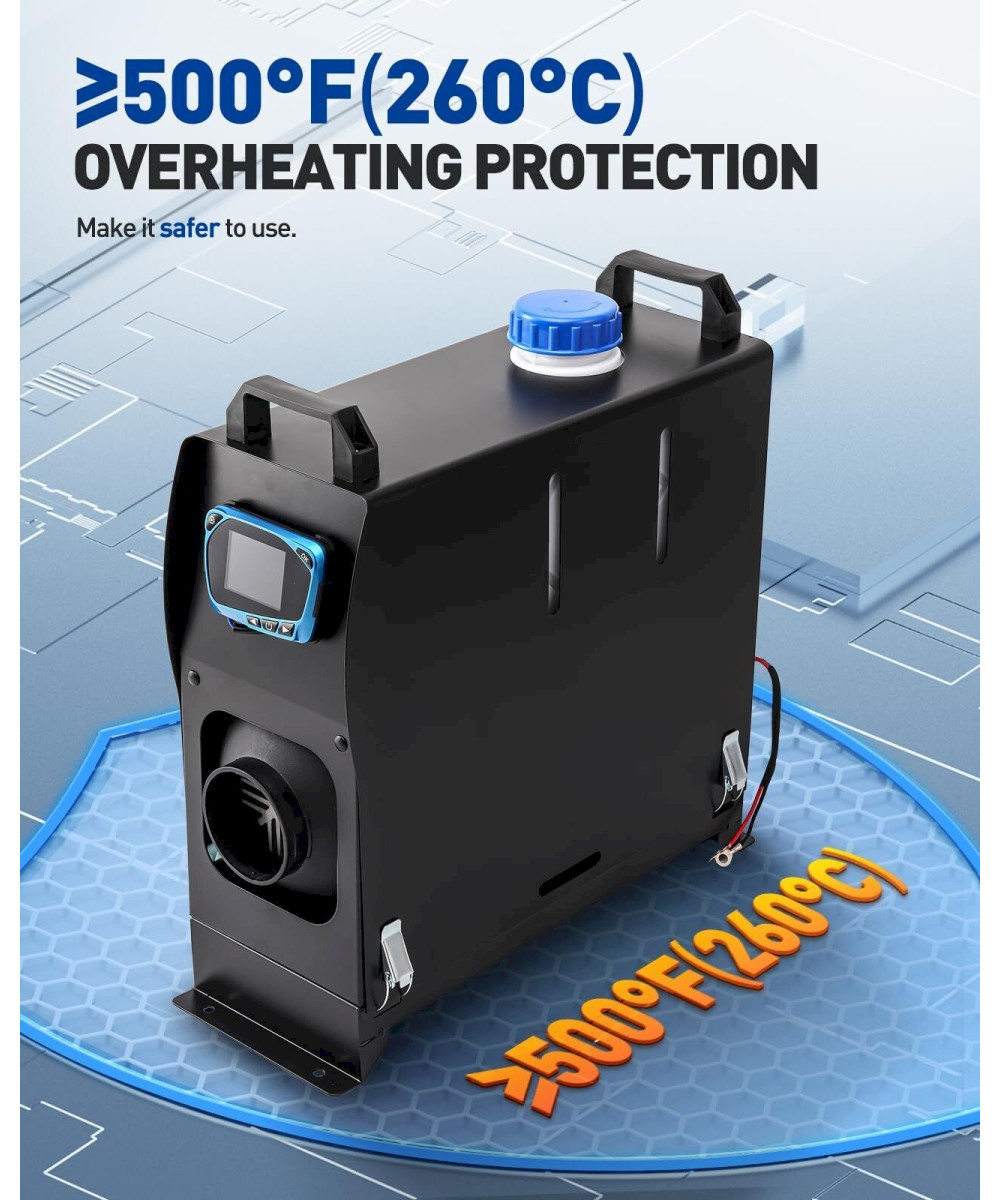 [Effiziente Diesel-Luftheizungsanlage]: Heizleistung: 5 kW; Kraftstoffart: Diesel; Nennspannung: 12 V. Betriebstemperatur: -40 ~ +80 °C. Lassen Sie sich von kalten Wintern nicht vom Reisen oder Campen in allen vier Jahreszeiten abhalten. Machen Sie sich bereit, mit unserem Diesel-Luftheizgerät warm zu bleiben.