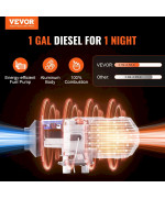 Niedriger Energieverbrauch & hohe Leistung: Sparen Sie Kraftstoffkosten mit der präzisen, geräuscharmen Kraftstoffpumpe unserer Dieselheizung, die nur 1 Gallone pro Nacht verbraucht und den Kraftstoffverbrauch auf 0,16 bis 0,52 Liter pro Stunde senkt. Mit einem 10-Liter-Kraftstofftank mit großem Fassungsvermögen kann der Diesel-Lufterhitzer bis zu 19 Stunden ununterbrochen Wärme liefern, wodurch die Kraftstoffeffizienz maximiert und Energieverschwendung minimiert wird.