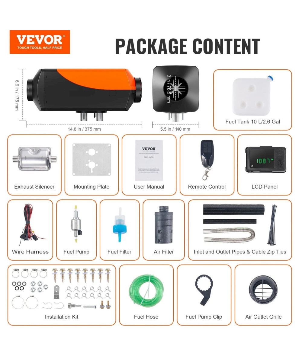 Effiziente Heizung: Heizleistung: 5 kW; Nennspannung: 12 V. Anwendbarer Bereich: 161-215 Fuß² (15-20 m²). Unser Diesel-Lufterhitzer verfügt über einen sandgestrahlten Aluminium-Wärmetauscher für eine schnelle Wärmeerzeugung und -übertragung, sodass Ihr Fahrzeug oder Boot innerhalb von 10 Minuten eine angenehme Temperatur hat.