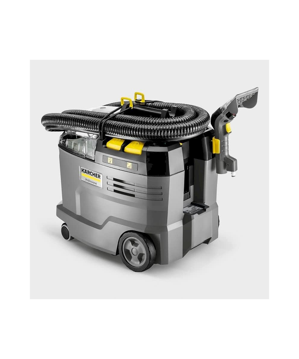Weltweit einmalig, robust und kabellos flexibel: unser Akku-Waschsauger Puzzi 9/1 Bp. Als einziges professionelles akkubetriebenes Sprühextraktionsgerät auf dem Markt begeistert dieses Puzzi mit herausragenden Leistungen und maximaler Bewegungsfreiheit bei der Reinigung von Polstern und textilen Flächen beispielsweise im Hotel- und Gaststättengewerbe, der Fahrzeuginnen- oder Gebäudereinigung. Dabei ist dieses Puzzi ausgesprochen leise, sodass es auch bei Publikumsverkehr eingesetzt werden kann, und ist dank des ergonomischen Tragegriffs problemlos mit nur einer Hand transportierbar. Für beste Ergebnisse bei der Tiefenreinigung wird die Reinigungslösung unter Druck tief in die Textilfasern eingesprüht und zusammen mit dem gelösten Schmutz wieder abgesaugt. Serienmäßig mitgeliefert werden: extra kurze Polsterdüse, Sprühsaugschlauch, 2-in-1-Behälter für Frisch- und Schmutzwasser, integrierte Zubehöraufbewahrung und vieles mehr. Bitte beachten Sie bei Ihrer Bestellung, dass bei dieser Geräteversion der kraftvolle 36 V Kärcher Battery Power+-Akku sowie das zugehörige Schnellladegerät separat zu bestellen sind.