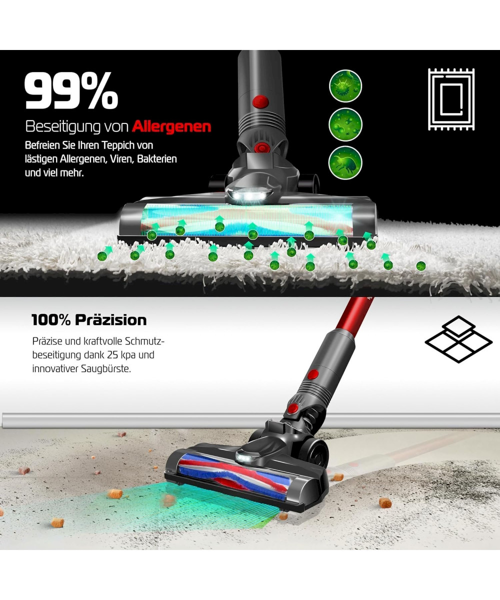 KESSER Akku Staubsauger beutellos 3in1 mit HEPA Filter Handstaubsauger kabellos rot