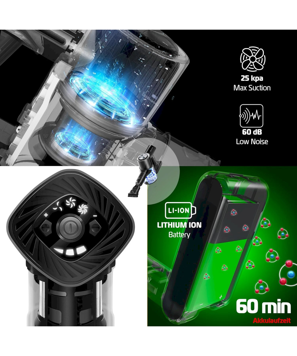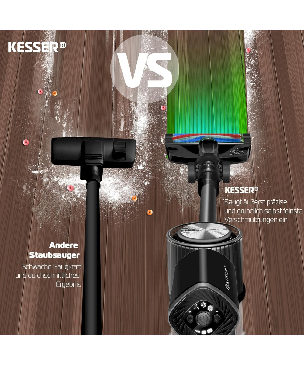 KESSER Akku Staubsauger beutellos 3in1 mit HEPA Filter Handstaubsauger kabellos schwarz