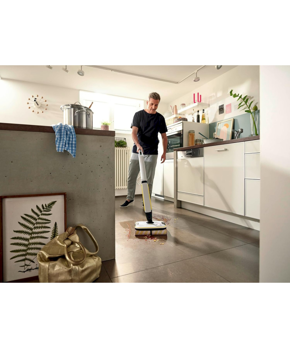 Kein Staubsaugen vor dem Wischen mehr! Dank 4-Walzen-Technologie mit gegenläufiger Rotation beseitigt unser Akku-Hartbodenreiniger FC 7 Cordless Stone trockenen und feuchten Alltagsschmutz mühelos und schnell von allen Hartböden – dank zuschaltbarer Boost-Funktion auch in sehr hartnäckigen Fällen und immer sauber bis an den Rand. Selbst Haare werden dank des Haarfilters aufgenommen. Dabei sind bis zu 50 Prozent Zeiteinsparung** im Vergleich zur herkömmlichen Methode und gut 20 Prozent bessere Reinigungsergebnisse gegenüber einem normalen Wischmopp* möglich. Bis zu 175 m² Fläche unempfindlicher Hartböden und Fugen schafft der leistungsstarke Akku bei 45 Minuten Laufzeit. Wassermenge sowie Rotationsgeschwindigkeit der automatisch befeuchteten Walzen sind passend zum Boden in 2 Reinigungslevel einstellbar, das lästige Eimerschleppen entfällt dank separater Frisch- und Schmutzwassertanks.