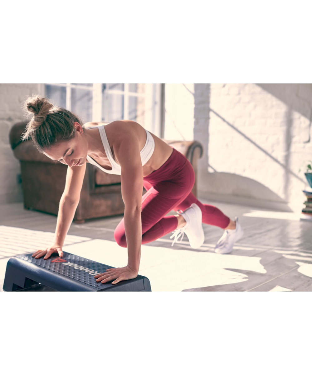 Der Reebok Mini Step kann als Plattform für das Training mit dem eigenen Körpergewicht oder für Callisthenics verwendet werden und hilft so, die Muskeln zu trainieren und die Ausdauer zu verbessern. - Plyo