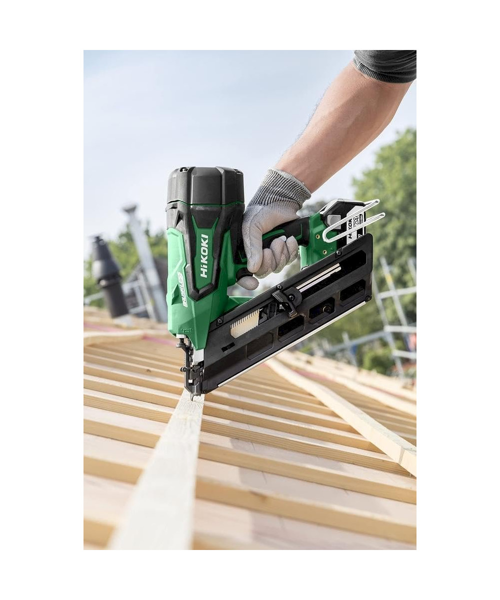 Der Akku-Streifennagler NR1890DBCL von Hikoki hat einen Brushless Motor, welcher weitestgehend wartungsfrei ist. Der Nagler hat eine Werkzeuglose Eintreib-Tiefeneinstellung. Einzel und Kontaktauslösung. Eine LED sorgt für eine optimale Sicht auf das Material. Der 2-Stufen Sicherheitsschalter verhinder eine unbeabsichtigte Schussauslösung. Automatische Abschaltung nach 30 Minuten Inaktivität, sorgt für eine erhöhte Sicherheit. Eine Akku-Ladeanzeige und ein beidseitig verwendbarer Gürtelhaken sind ebenfalls vorhanden. Zusätzlich ist ene Sperre gegen einen "Trockenschuss" verbaut, wenn sich nur noch 7-8 Nägel im Magazin befinden.
