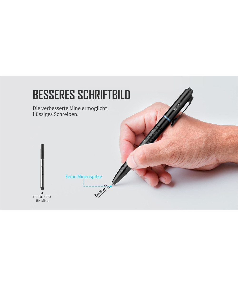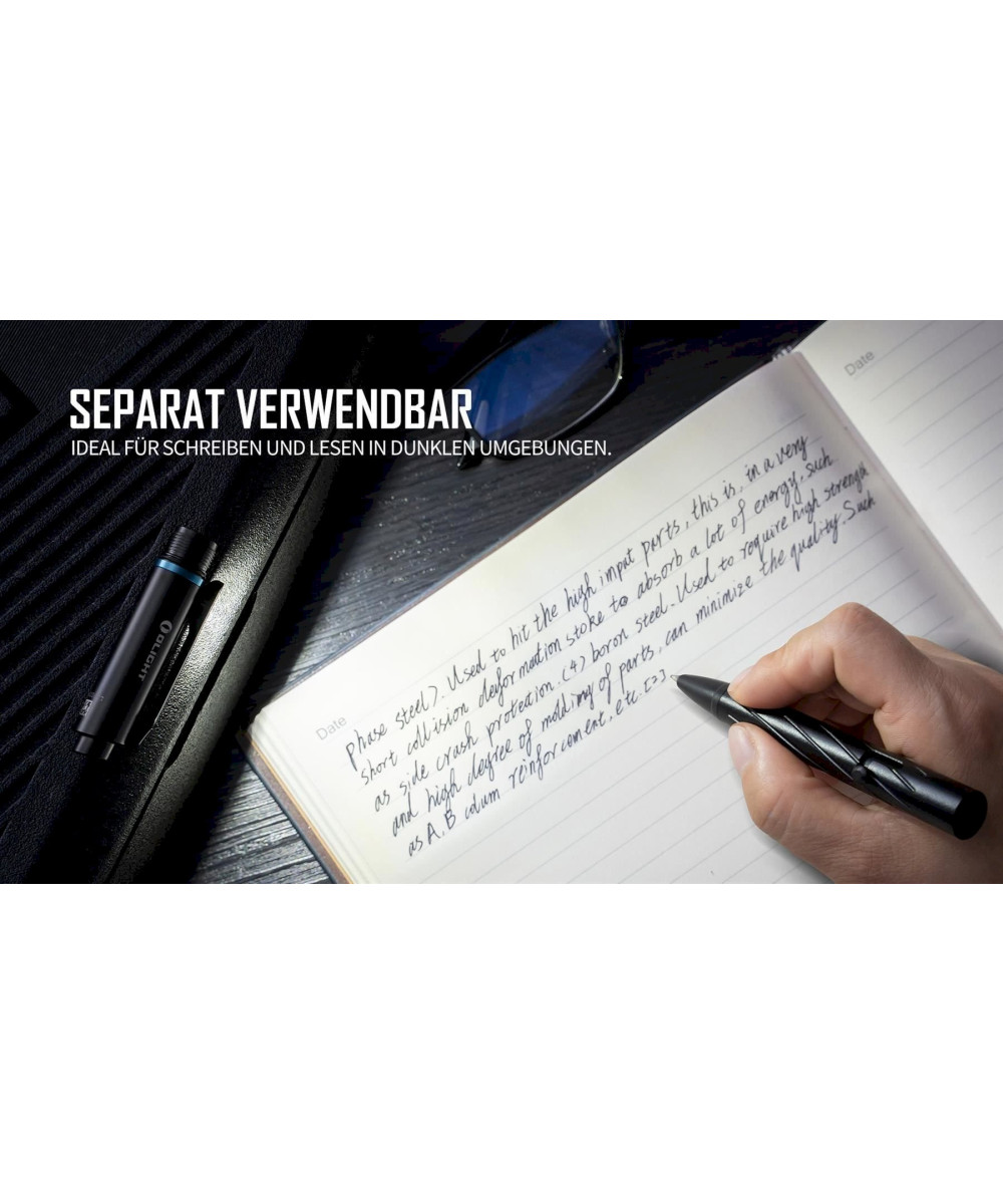 Besonderheiten ● Grüner Laser & LED: Ob Sie schreiben, lesen oder eine Präsentation halten, der OPen Pro verfügt über ein innovatives 3-in-1-Design mit einem Stift, einem grünen Laser und einem Licht je nach Bedarf. ● Einfache Aktivierung: Mit dem L-Bolzen kann die Stiftspitze schnell hinaus- und wieder hineingeschoben werden. Ein einfaches Drücken nach oben aktiviert das Licht. ● Trennbares Design: Die 2-in-1-Stiftlampe ist in zwei Teile trennbar, was mehr Flexibilität für die Nacht- oder Ersatzbeleuchtung bietet. ● Die neu gestaltete LED ist in den Clip integriert, damit Sie die Hände frei haben. Der Stahlclip lässt sich leicht an der Tasche, dem Rucksack, der Mütze oder dem Notebook befestigen, um Licht ins Dunkel zu bringen.