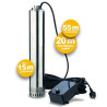 Ausgestattet mit einem 1000 Watt Motor und 20 m Anschlusskabel wird die Tiefbrunnenpumpe zum idealen Helfer bei der Wasserversorgung (20 m bis zum Schalter + 1 m bis zum Netzstecker).
