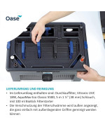 Praktische Reinigungshandgriffe und ein Bodenablauf ermöglichen die einfache Wartung und Reinigung des Oase BioSmart 18000.