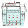 Der in diesem Ein-Kammer-System integrierte UV-C-Teichklärer unterstützt die Wirkungsweise des Teichfilters erheblich. Teichklärer bestrahlen in einem Durchflussreaktor das Teichwasser mit UV-C Strahlung und verändern durch ihre Strahlung die Tertiär- und Quartär-Strukturen der Algenproteine. Teichklärer töten so die Algen ab, sie verklumpen zu größeren Partikeln und lassen sich leicht über die mechanische Teichfilterung im Teichfilter aus dem Wasserkreislauf entfernen.