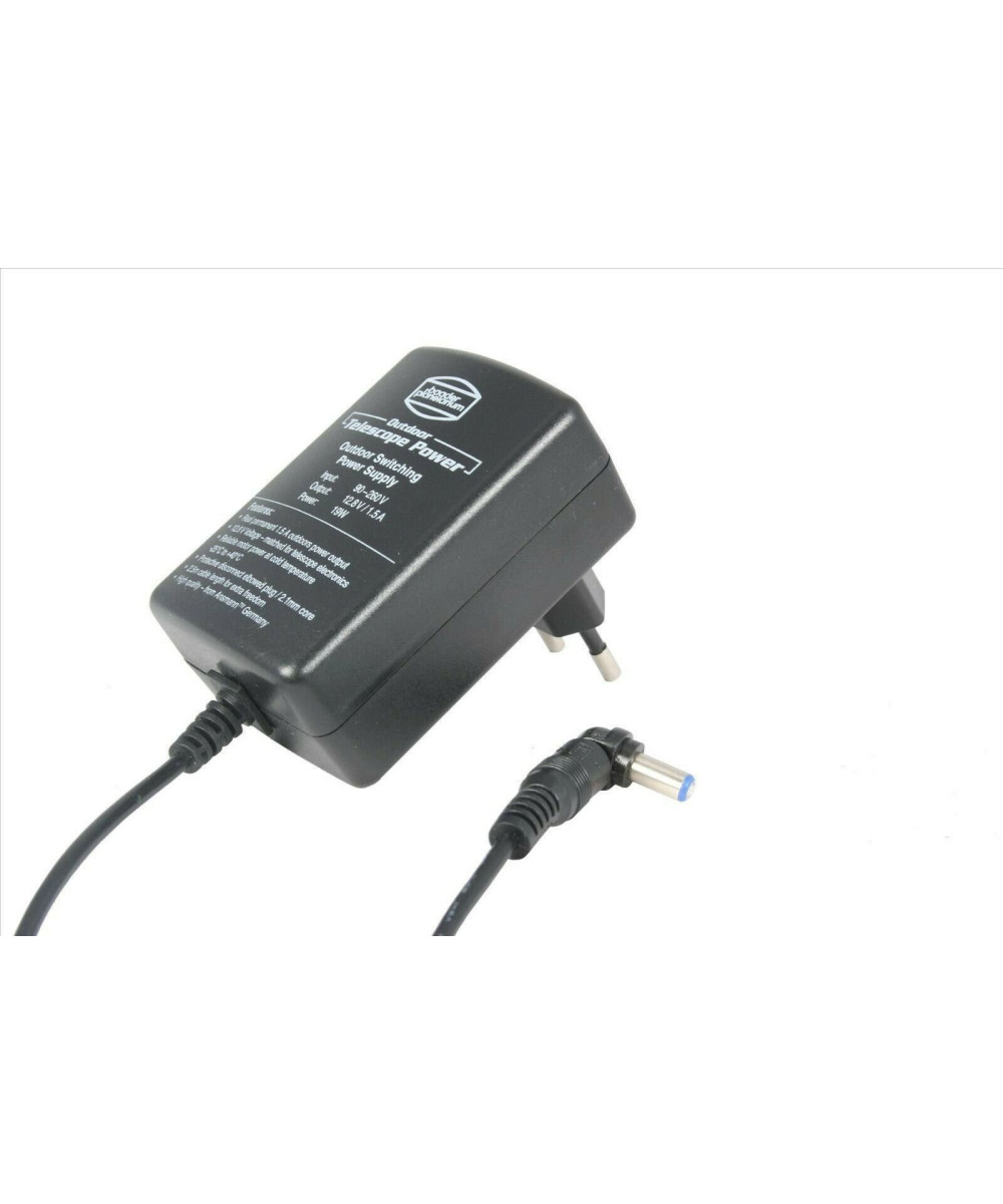 Dieses neue Schaltnetzteil für den Aussenbereich wurde speziell im Hinblick auf die Bedürfnisse von Amateurastronomen in nördlichen Breiten hergestellt. Dieses 12,8 V/1,5 A Festspannungsnetzteil mit protective-disconnect Winkelstecker passt zum Beispiel zu allen kleinere Celestron Montierungen (Advanced GT, NexStar SE, NexStar SLT, LCM, CPC) und bietet bei etwas höherem Preis große Vorteile gegenüber normalen Innenraum Stecker-Netzteilen. Es passt auch zu allen anderen gängigen Teleskopmontierungen und Geräten mit diesem Strombedarf und Stecker (Tip Positiv/Plus innen, Steckerdurchmesser 5.5mm)