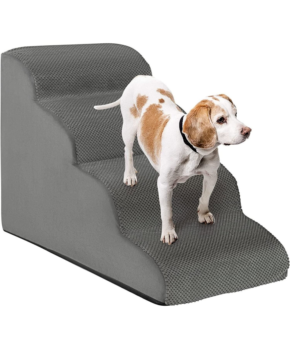 COSTWAY Hundetreppe 4 Stufen - rutschfeste Hundestufen aus Schaumstoff GRAU
