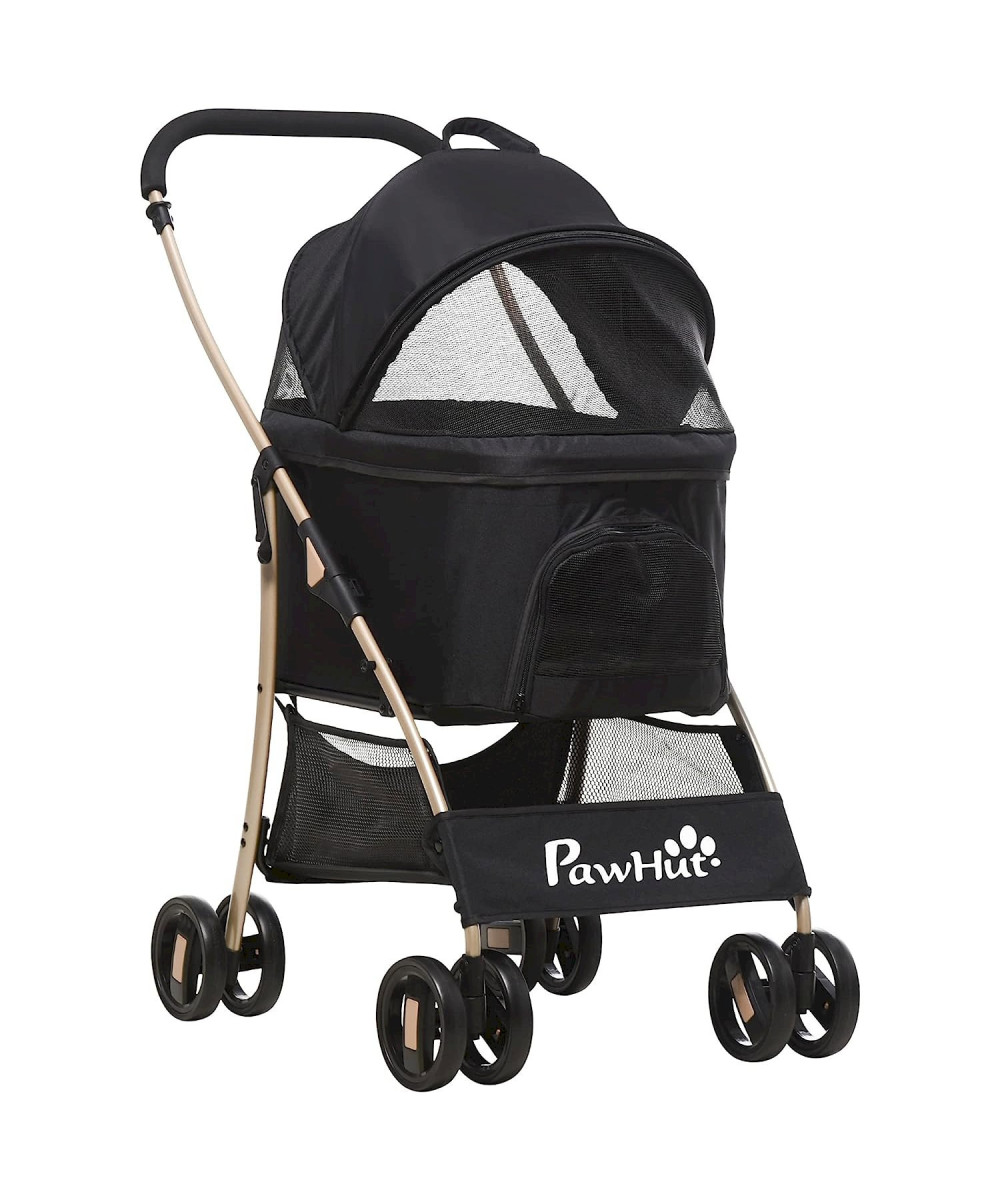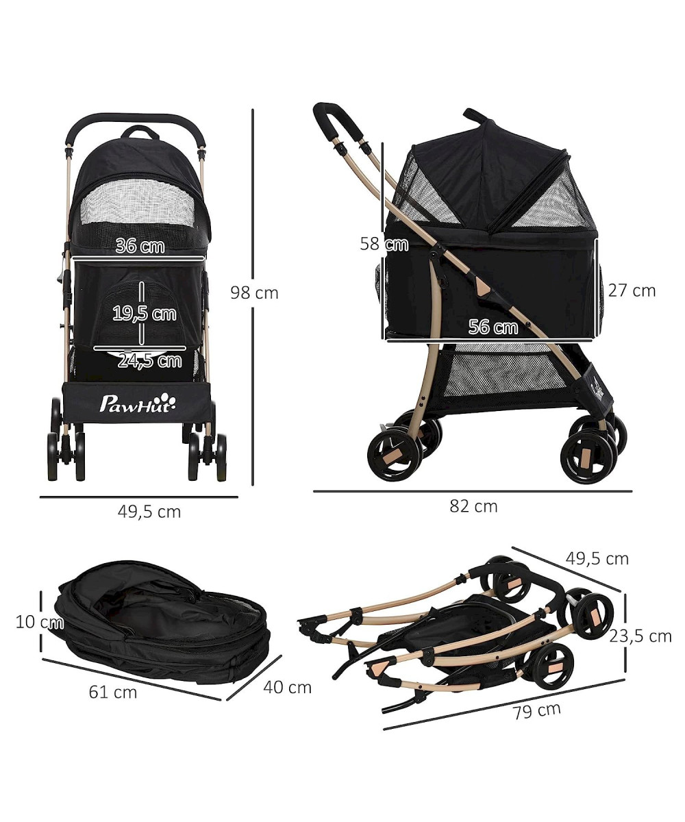 PawHut 2-in-1 Hundewagen und Transportkorb, klappbar Schwarz+Gold
