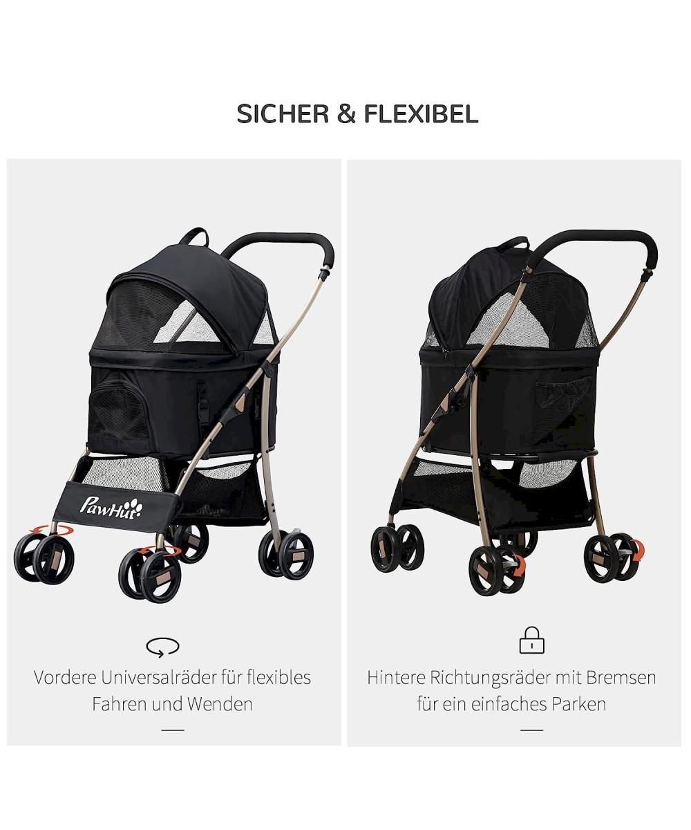 Brauchen Sie einen tollen Hundewagen oder einen Katzenwagen, um Ihren pelzigen Freund mitzunehmen? Dann schauen Sie sich diesen PawHut Hundewagen an! Dieser einzigartig gestaltete Hundebuggy ist perfekt für Tierhalter, die viel mit ihren Hunden unterwegs sind. Das Beste daran - dieser Hundetrolley lässt sich in eine Transporttasche umbauen. Der Wagen verfügt über einen zusätzlichen Korb, in dem Sie Zubehör verstauen können. Die leichtgängigen Räder sorgen dafür, dass Sie ihn überallhin mitnehmen können.