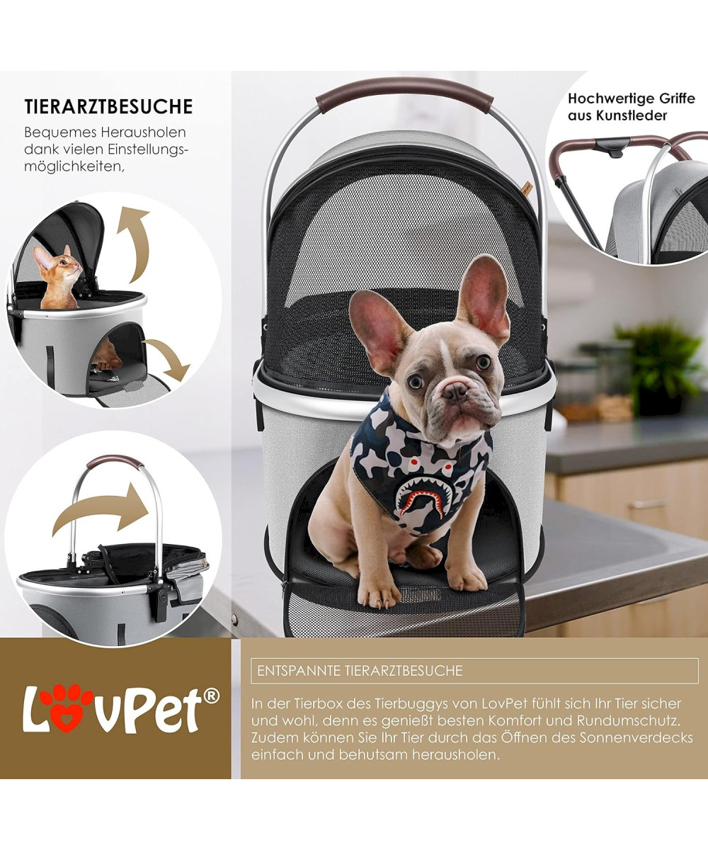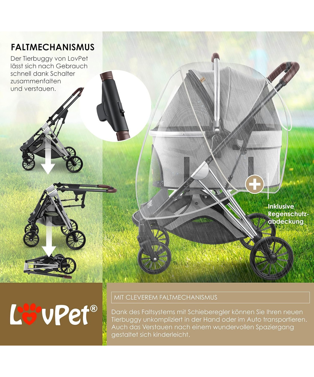LovPet Hundebuggy ist ein optimales Transportmittel für sehr junge, alte oder kranke Hunde. Der Hundetransportwagen erhöht den Bewegungsradius und bietet schwächeren Hunden einen sehr guten Ausblick. Gerade im normalen Alltag sorgt der Hundewagen für eine Abwechslung und perfekten Komfort. Die Griffe sind mit aus hochwertigem Kunstleder und sorgen dadurch für einen ergonomischen Griff.