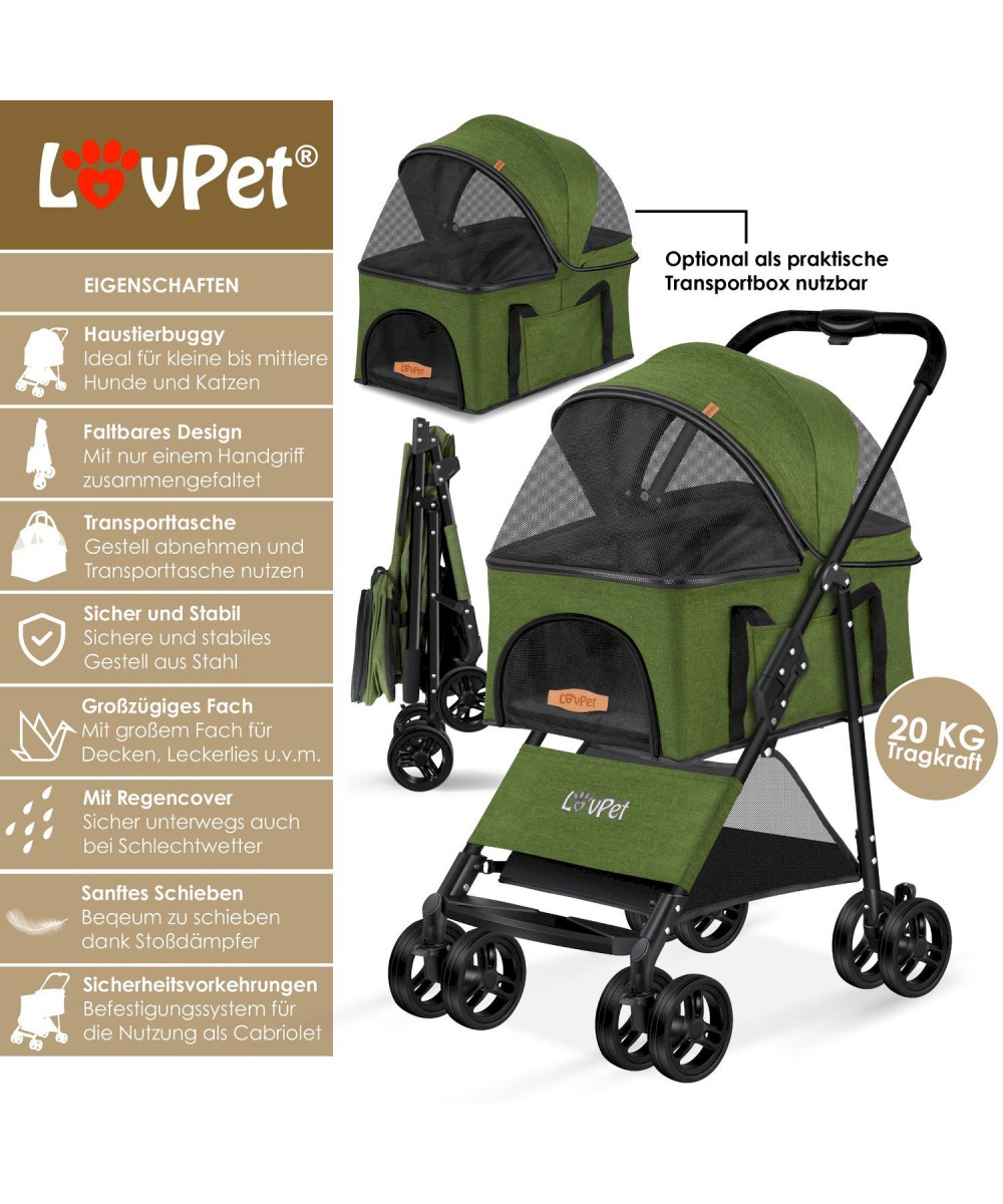 Hundewagen 2in1 faltbar Hundebuggy bis 20Kg khaki
