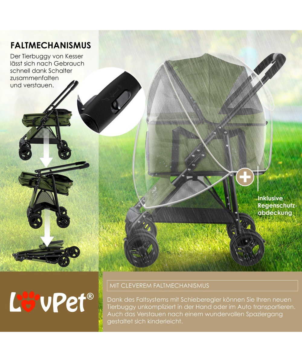 Ihr Hund wird die Cabriolet-Funktion des Stroller von LOVPET lieben - denn so kann er das Wetter in vollen Zügen genießen. Für die optimale Sicherheit sorgt hier die Schnallvorrichtung, an die Sie Ihren Hund befestigen können um einen Sprung aus dem komfortablen Buggy zu verhindern.