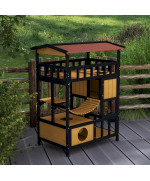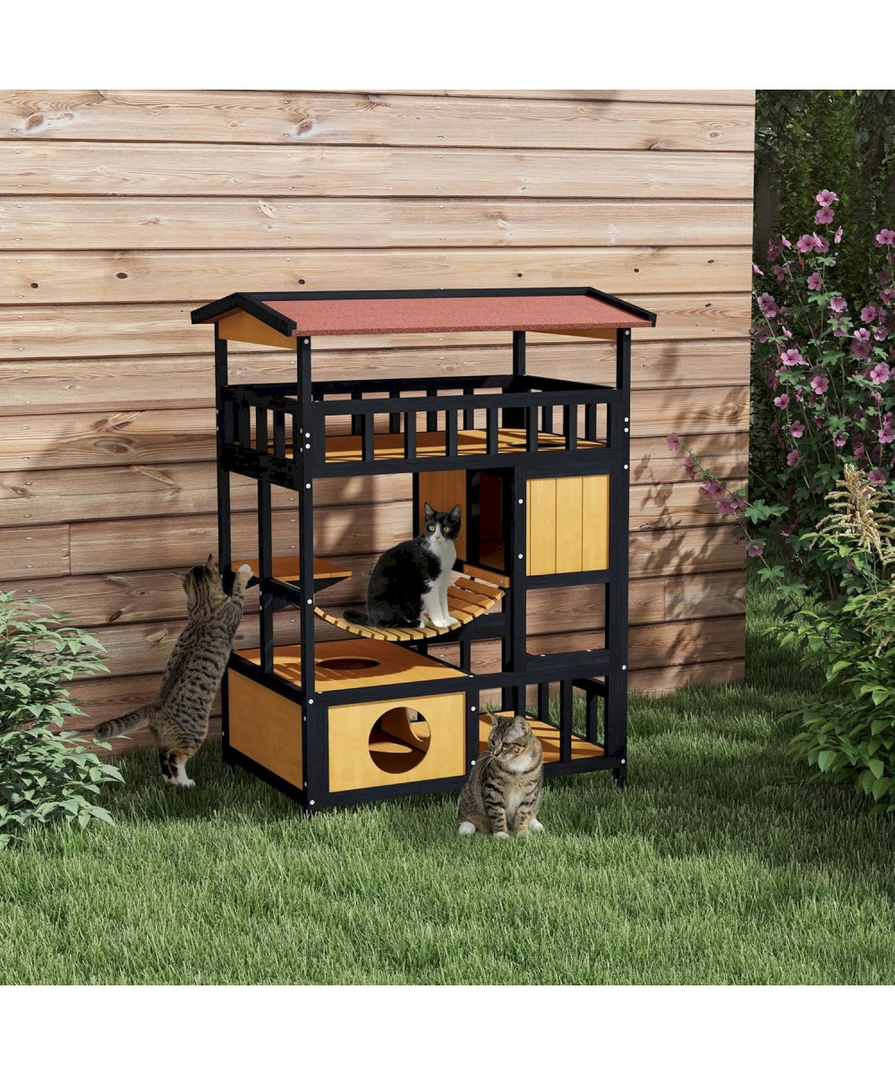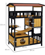 PawHut Katzenhaus, Katzenparadies mit Plattformen, Hängebrücke und Katzenhöhlen