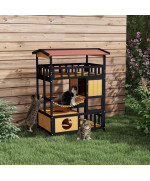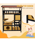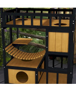 Dieses Outdoor-Katzenhaus bietet vier Ebenen, eine schwankende Hängebrücke, Balkonaussichtsplätze und kuschelige Verstecke. Es animiert Ihre Katze zum Klettern, Springen und lädt zum gemütlichen Ausruhen ein. Mehrere Eingänge und die robuste Tannenholzkonstruktion der Katzenhöhle garantieren zudem einfaches Erkunden und Sicherheit.