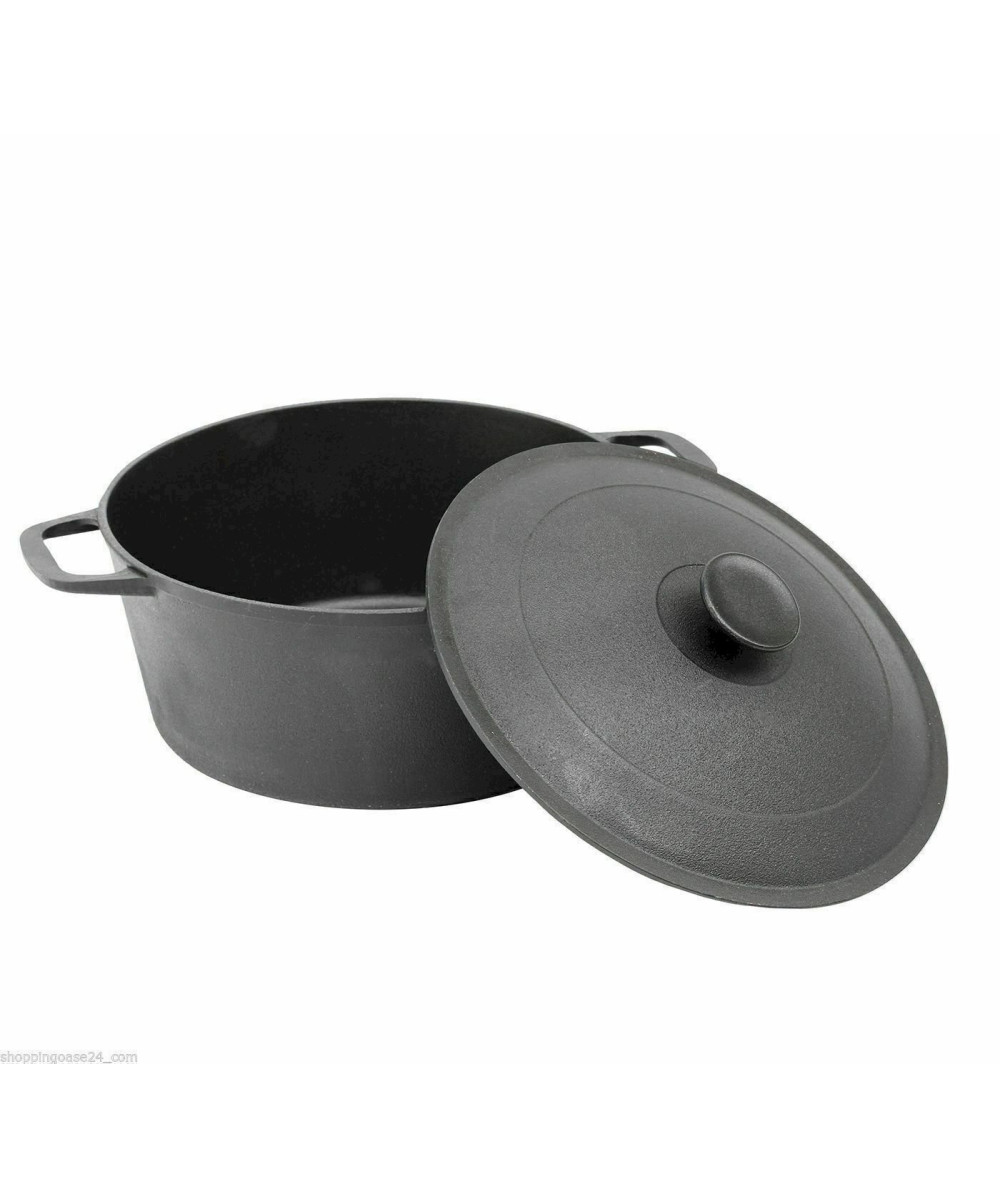 Deckel ist auch aus Gusseisen. Gusseisen gilt als das beste Meterial für das Herstellen der Pfannen und Töpfe, da es extrem hitzebeständig und praktisch ist, sondert keine Toxine ab, bewahrt lange die Hitze und dient Jahrzehnte lang. Geeignet für alle Herdarten.