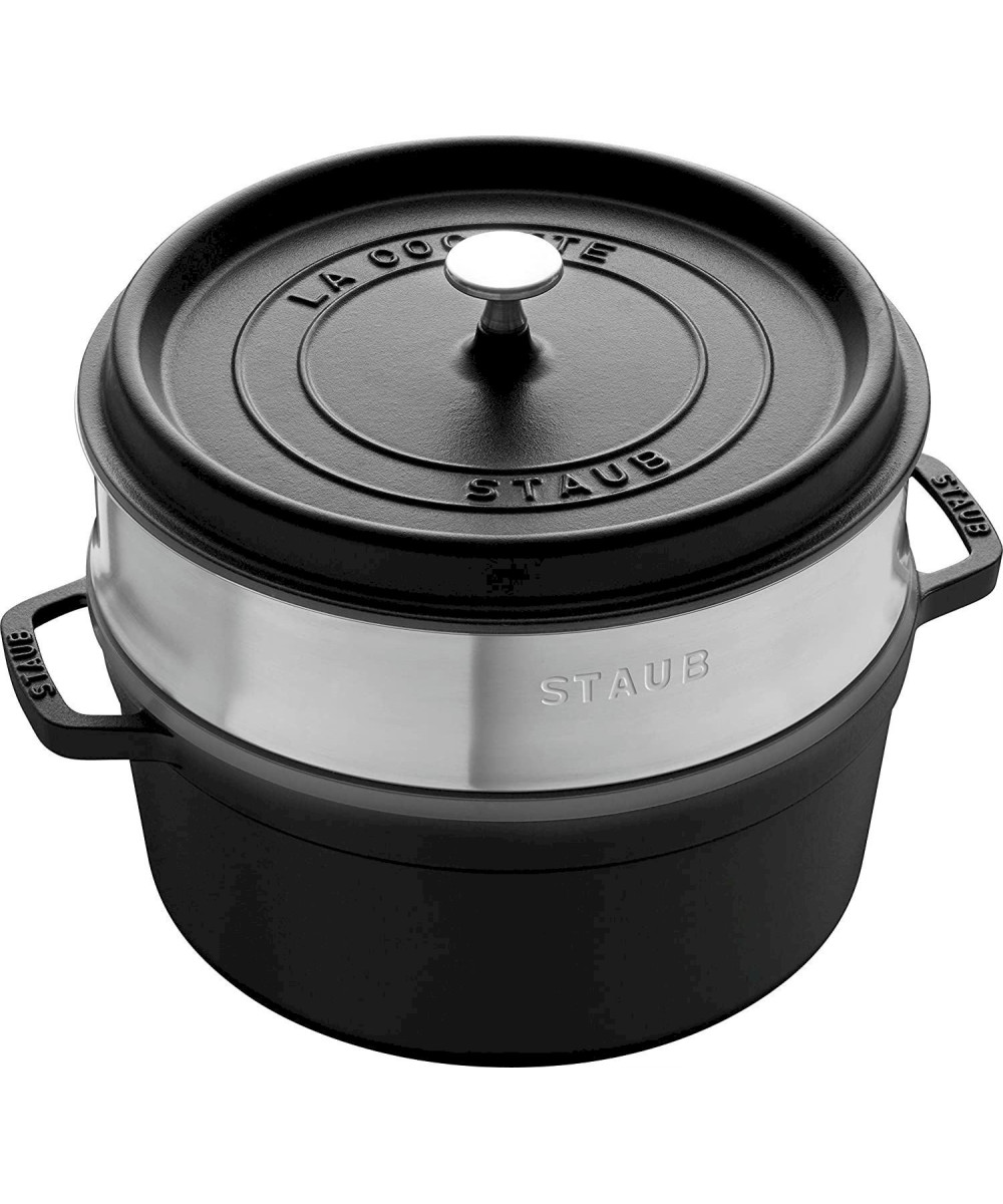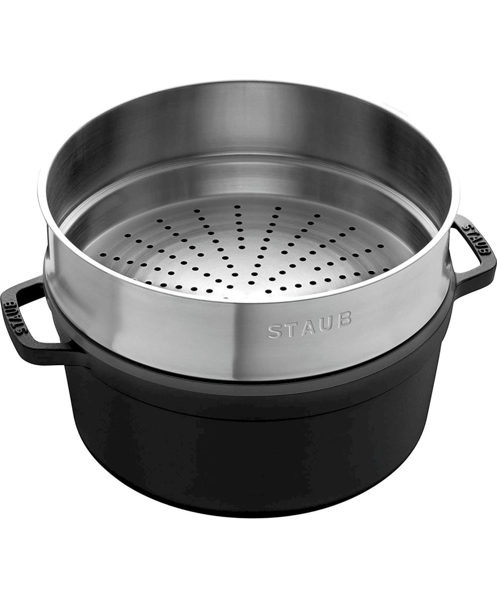 Staub Cocotte/Bräter rund mit Dämpfeinsatz (26 cm, 5,0 L, induktionsgeeignet, mit mattschwarzer Emaillierung im Inneren des