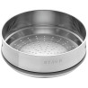 Zusätzlich ist die Cocotte mit einem Dämpfeinsatz aus Edelstahl 18/10 ausgestattet. Das Material zeichnet sich nicht nur durch Widerstandsfähigkeit und Stabilität aus, sondern ist zudem hitzebeständig und pflegeleicht. Der Einsatz macht möglich, Gemüse im gusseisernen Topf zu schmoren und zur gleichen Zeit Geflügel oder Fisch im Dämpfeinsatz schonend zu garen. Die Löcher an der Unterseite des Dämpfers verteilen den Wasserdampf gleichmäßig nach oben. Für einen festen Sitz ist der Rand mit einer Silikondichtung versehen.