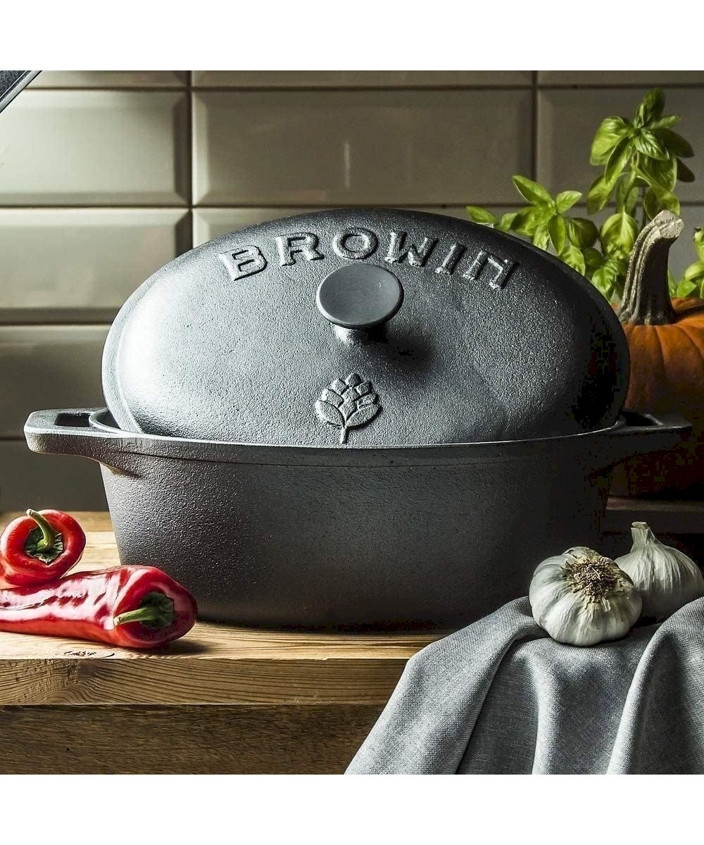 - Der Browin Gänsebräter zeichnet sich durch seine vielseitige Verwendung aus. Mit diesem Gefäß können Sie viele köstliche Gerichte zubereiten, sowohl für das tägliche Abendessen als auch für besondere Anlässe. In einem gusseisernen Bräter können wir die Ente oder das Huhn voll und ganz backen, das Fleisch in der Sauce schmoren, das Gemüse braten und andere Zutaten kochen. Geflügel- oder Schweinefleisch, das in einem Bräter zubereitet wird, ist extrem saftig, voller Aroma und äußerst lecker.